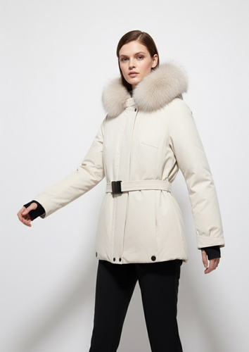 Giacca da Sci Impermeabile con Cappuccio in Pelliccia Sintetica – Eleganza e Performance Avorio