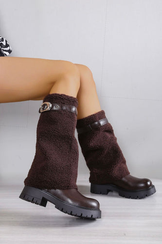 Stivali al polpaccio con cinturino ed effetto scamosciato e pelliccia staccabile