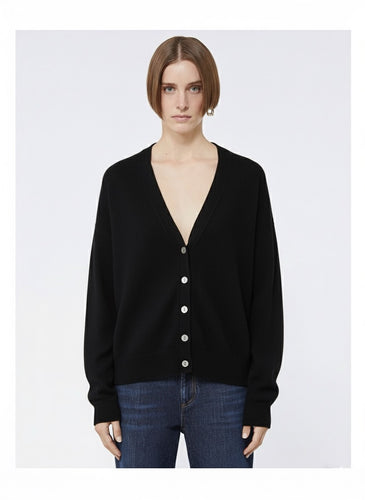 CARDIGAN NERO MADE IN ITALY IN MISTO LANA E CASHMERE