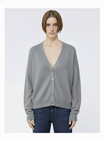 CARDIGAN GRIGIO CHIARO MADE IN ITALY IN MISTO LANA E CASHMERE