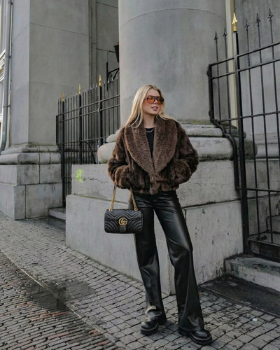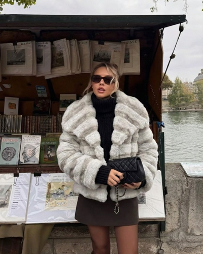 Giacca Corto Marrone in Eco-Pelliccia Reversibile