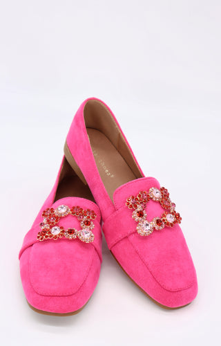 Mocassino ballerina scamosciato con fibbia quadrata di gioielli