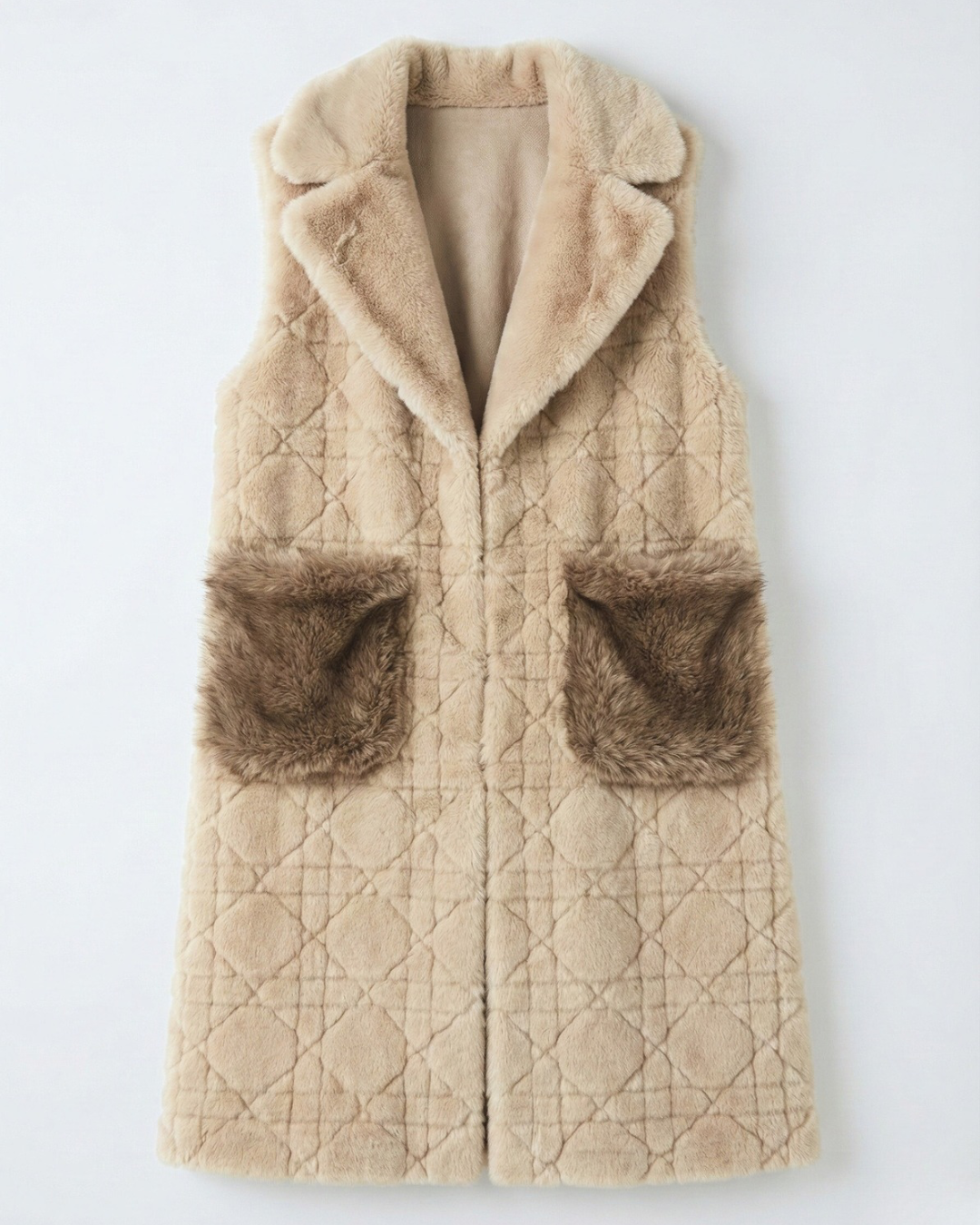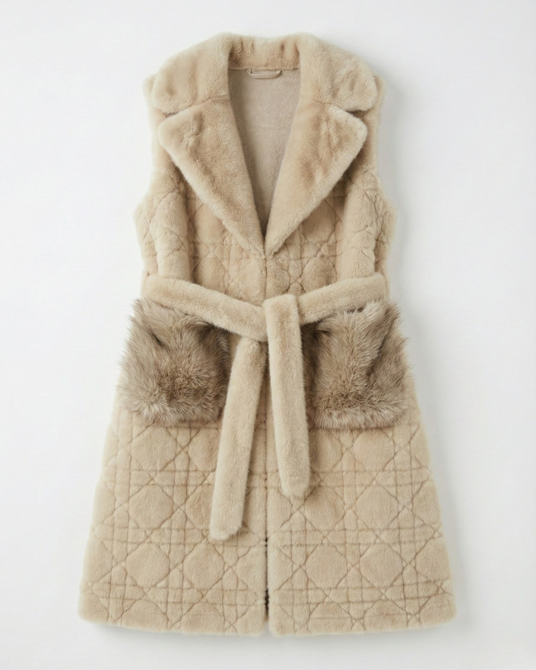 Aggiungi un tocco di eleganza e morbidezza ai tuoi outfit con questo gilet in pelliccia sintetica senza maniche. Un modello caldo, avvolgente e realizzato con una lavorazione trapuntata che dona profondità e stile. Le pratiche chiusure a gancio e la cintura in vita permettono di adattare la vestibilità alle tue esigenze, valorizzando la silhouette in modo naturale.