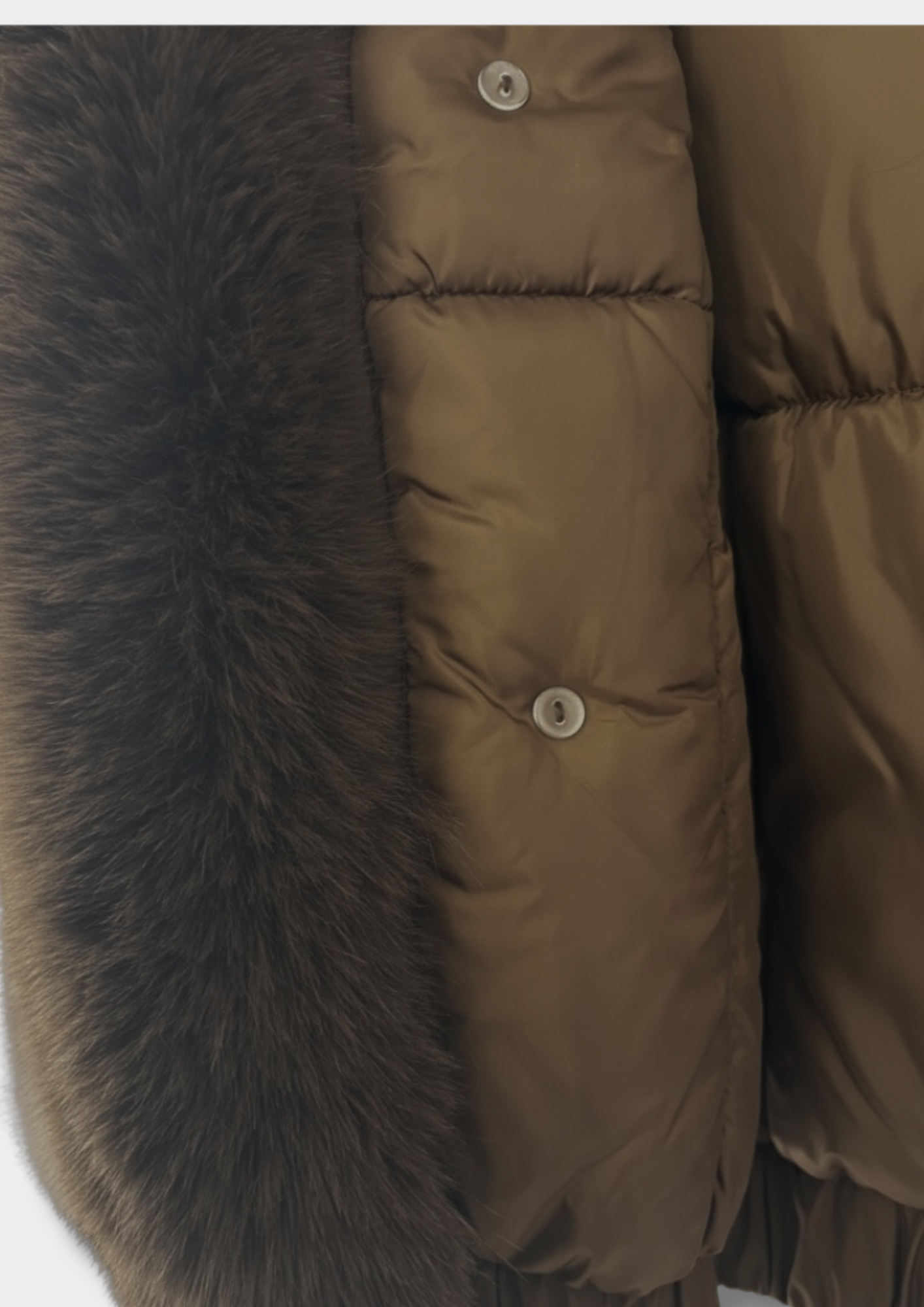 Il cappuccio, i bordi anteriori e i polsini sono arricchiti da una soffice pelliccia staccabile, applicata con bottoni nascosti: un dettaglio versatile che permette di passare facilmente da un look più sofisticato a uno più minimalista, garantendo allo stesso tempo un eccellente isolamento termico.