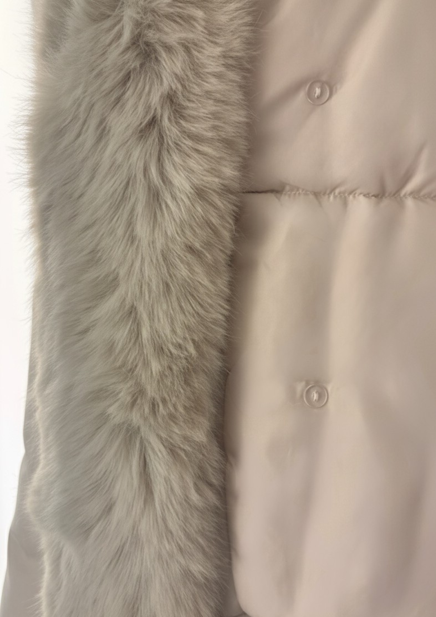 Il cappuccio, i bordi anteriori e i polsini sono arricchiti da una soffice pelliccia staccabile, applicata con bottoni nascosti: un dettaglio versatile che permette di passare facilmente da un look più sofisticato a uno più minimalista, garantendo allo stesso tempo un eccellente isolamento termico.