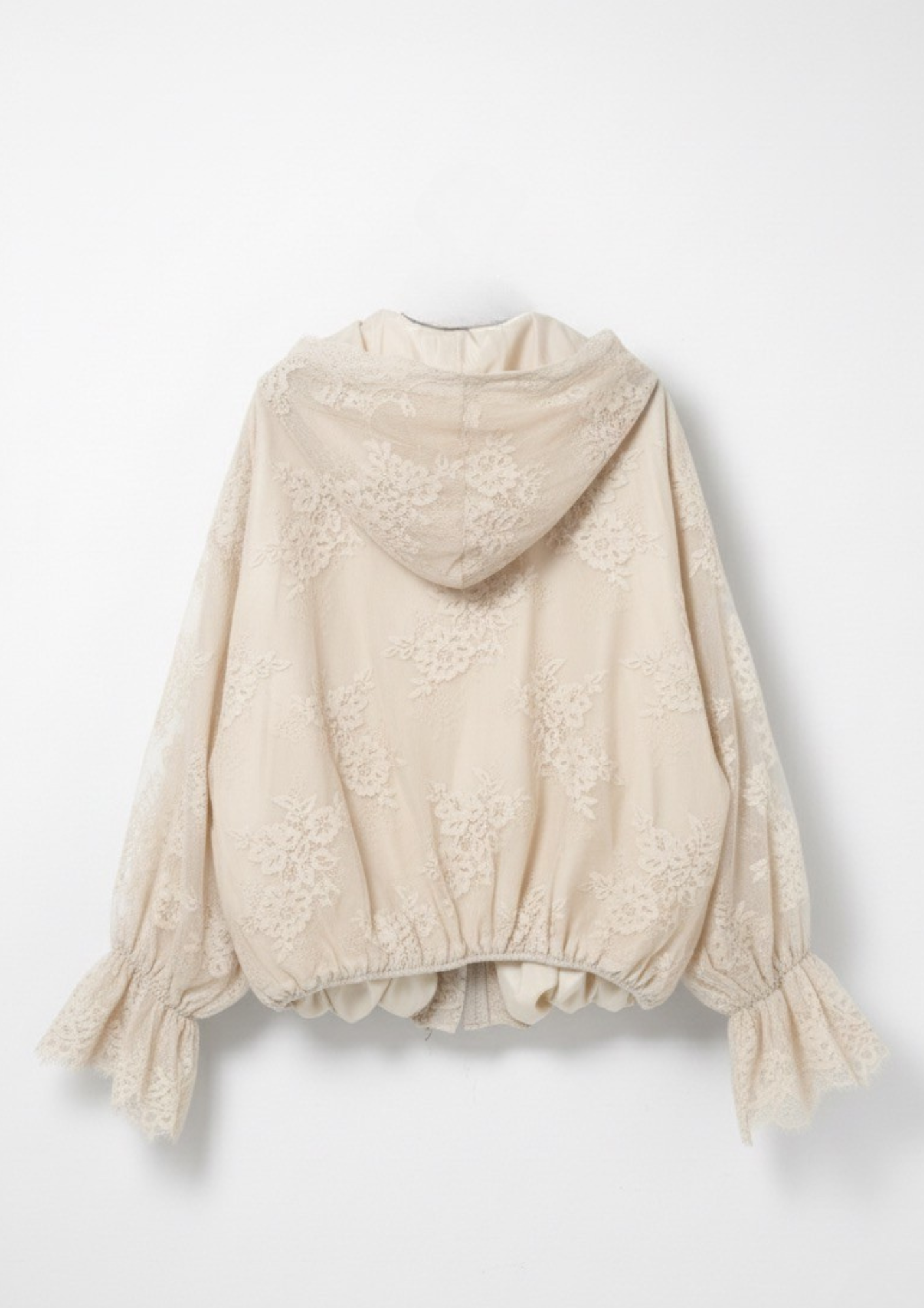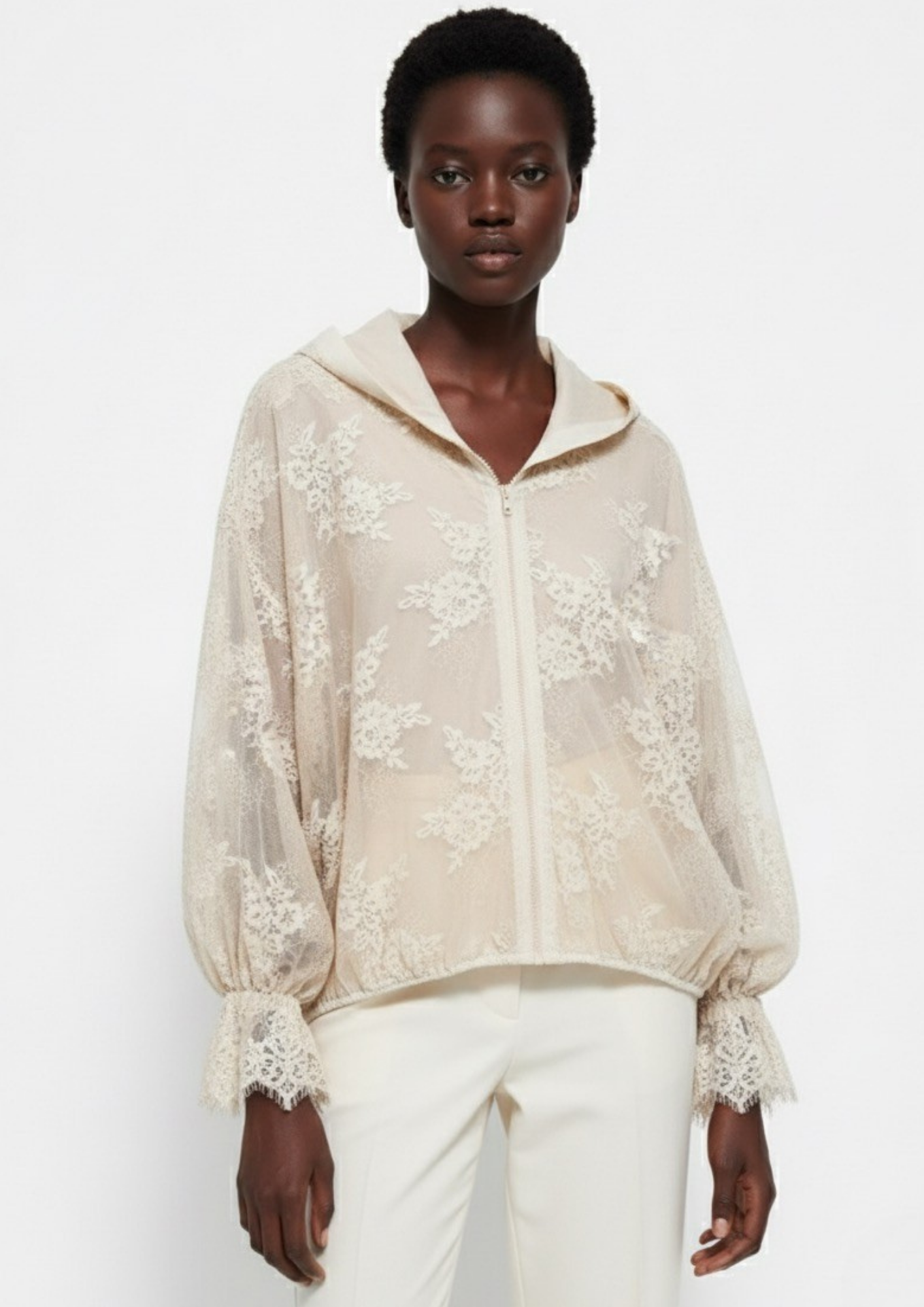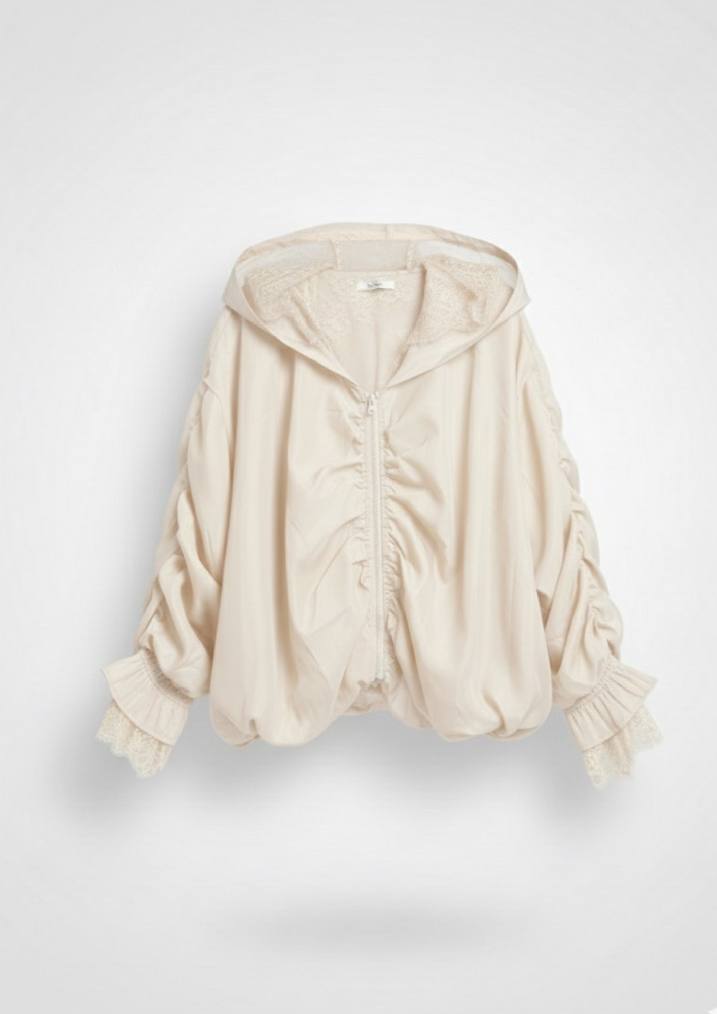 Doppia Faccia Giacca Beige Oversize in Seta e Pizzo - Stile Avvolgente con Maniche a Balze