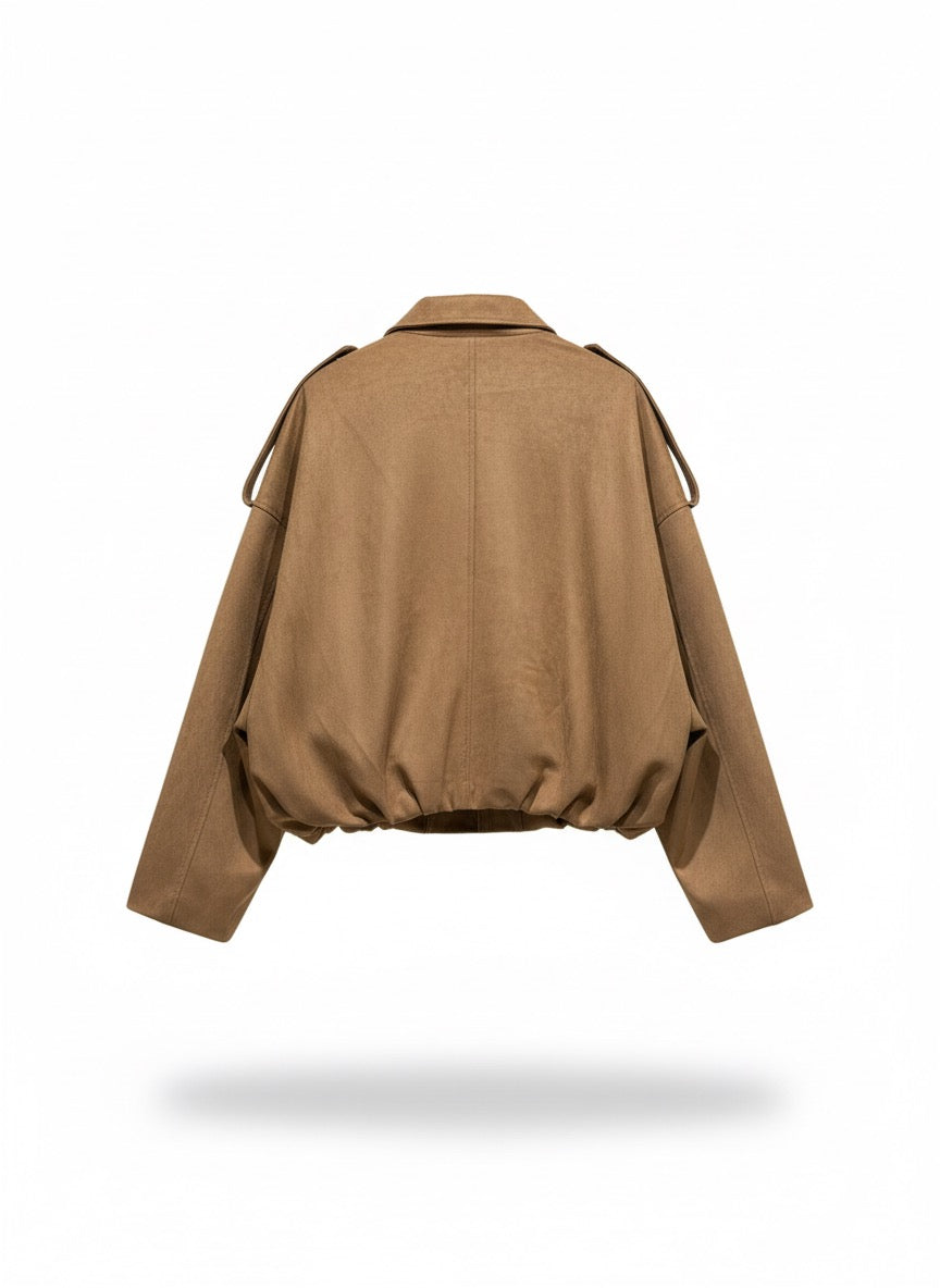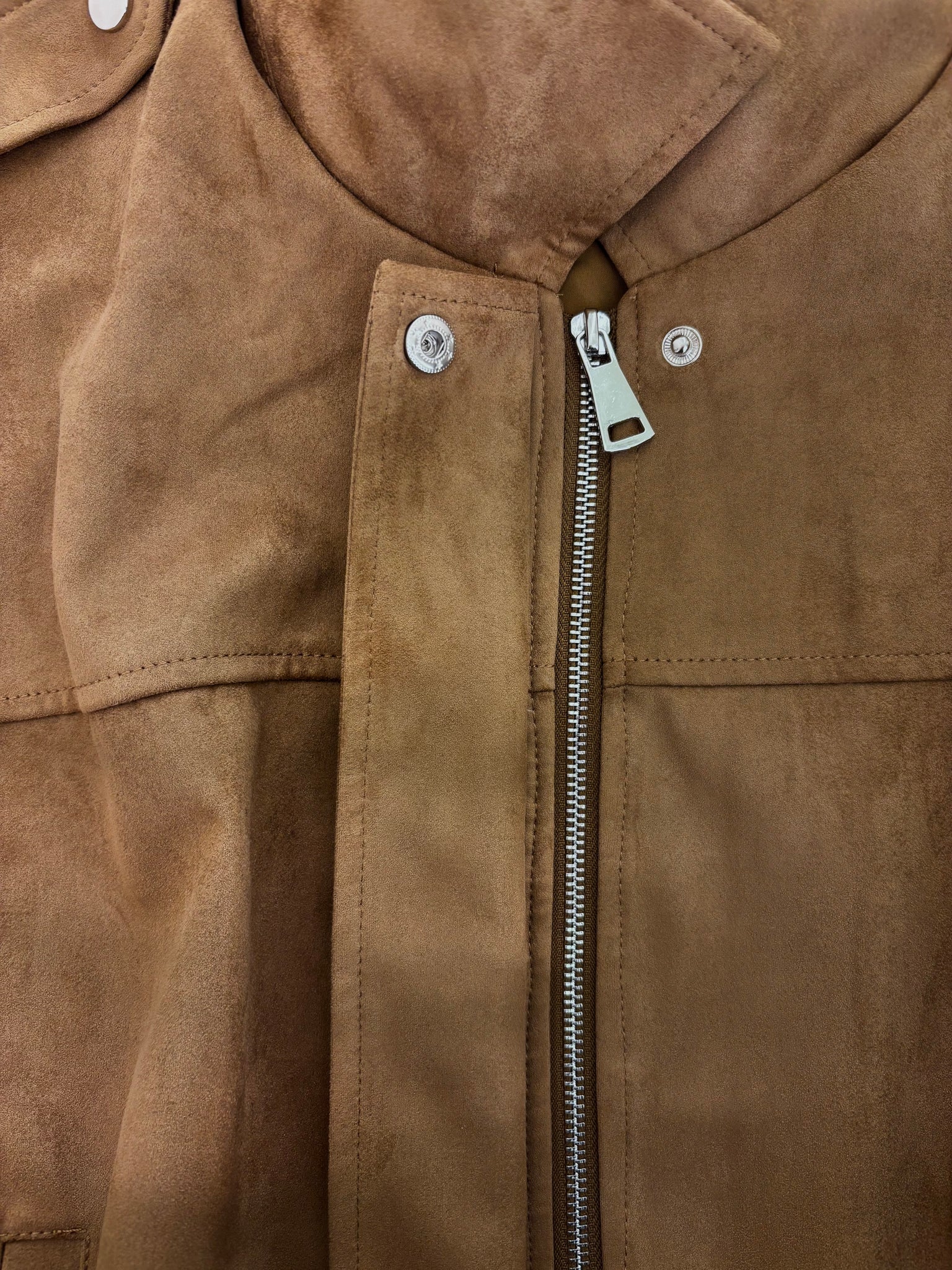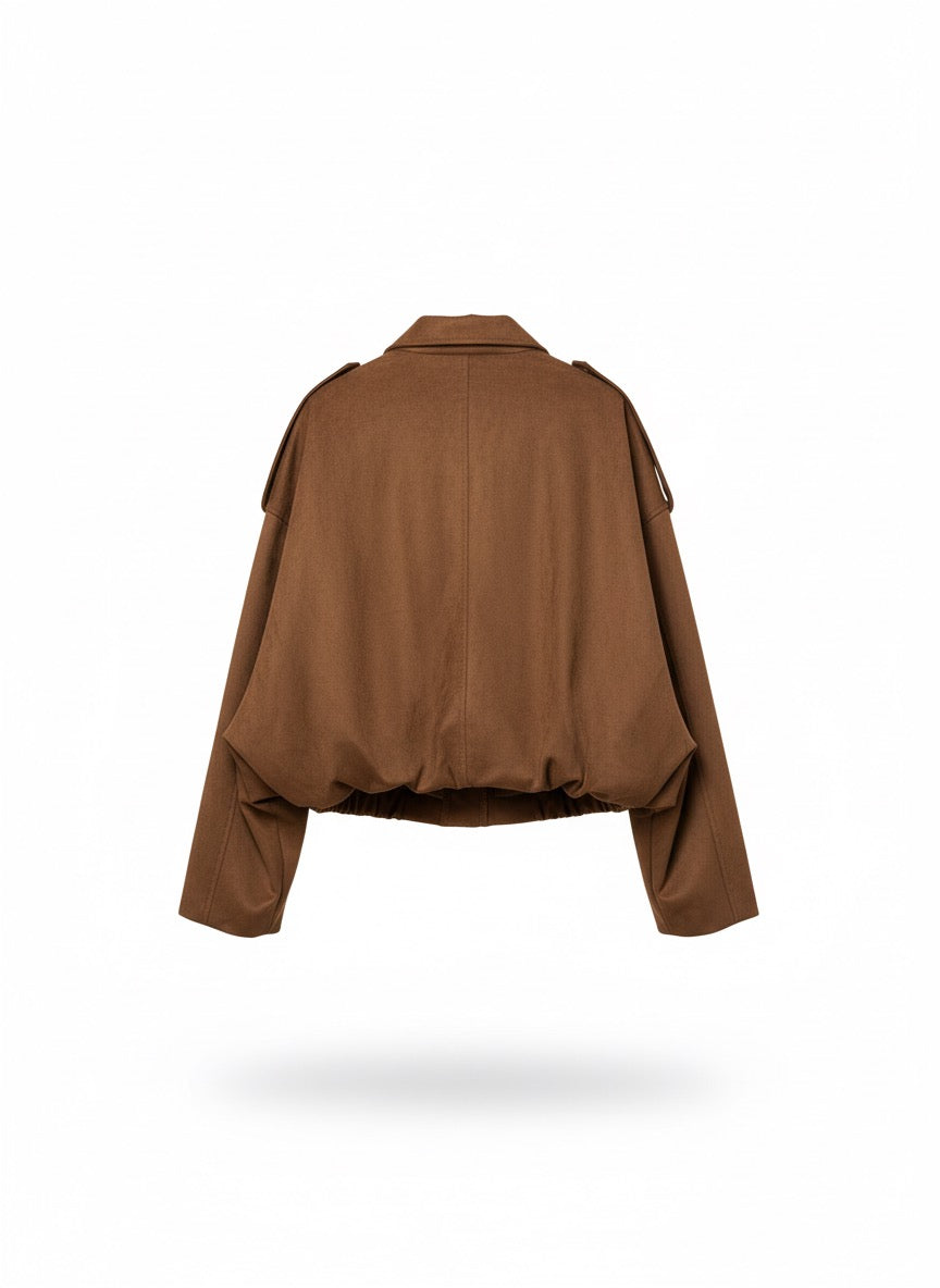 Tessuto misto: 90% poliestere, 10% elastano. Design diritto, stile bomber. Colletto a camicia. Chiusura anteriore a zip. Fodera interna. Taglia unica, lunghezza: 54cm, spalla: 66cm, manica: 56 cm, torace: 128 cm.