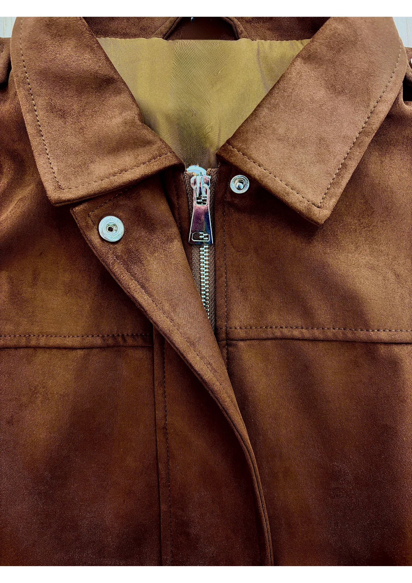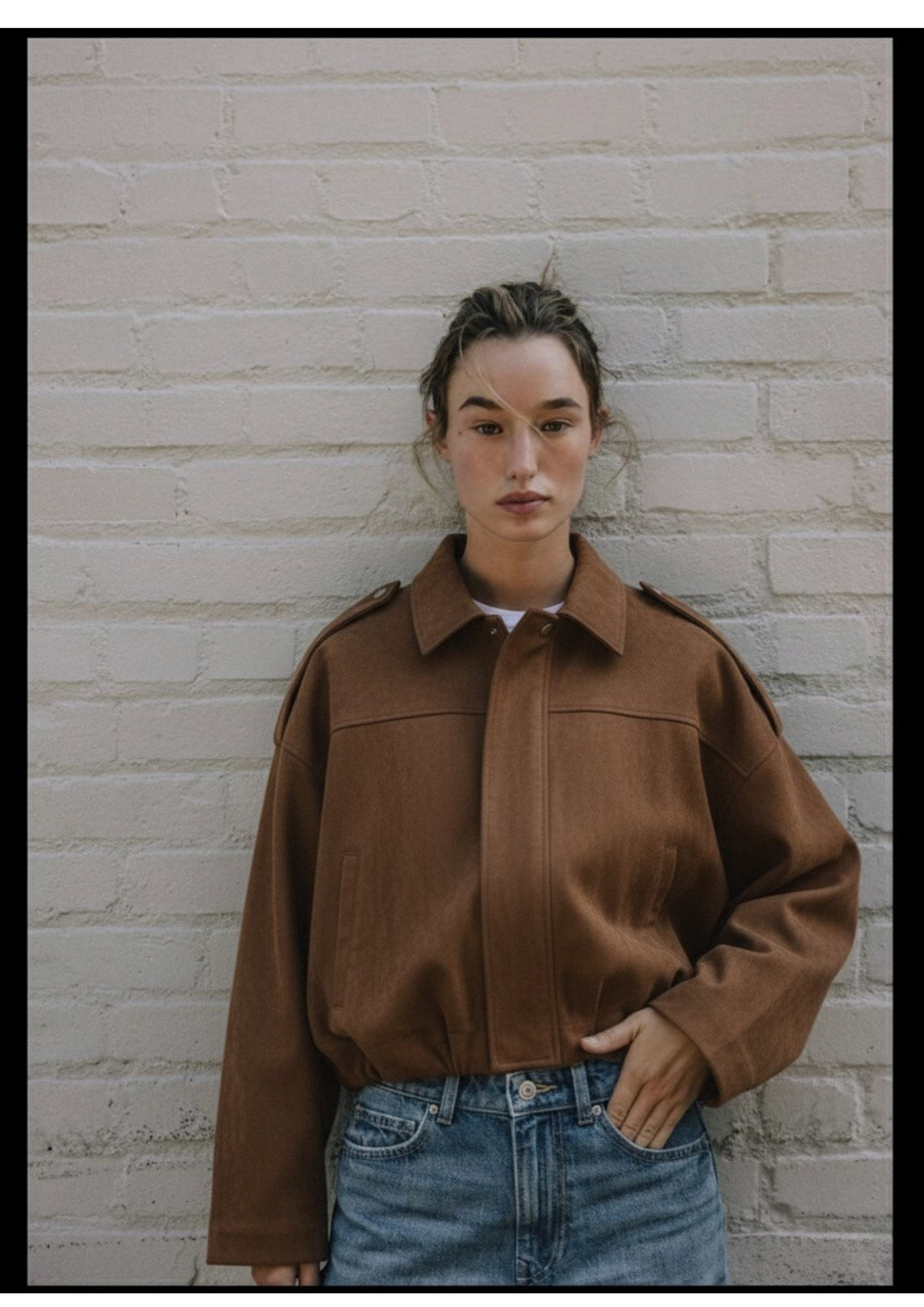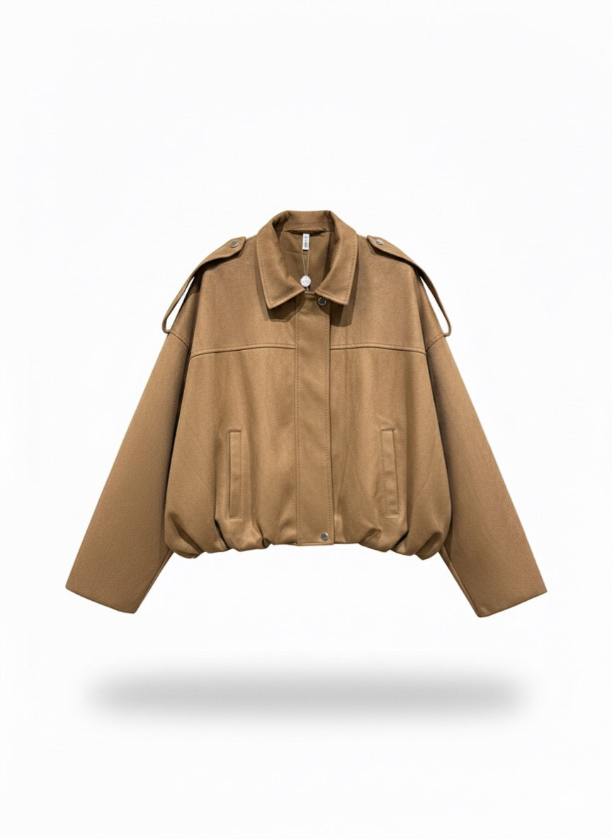 Tessuto misto: 90% poliestere, 10% elastano. Design diritto, stile bomber. Colletto a camicia. Chiusura anteriore a zip. Fodera interna. Taglia unica, lunghezza: 54cm, spalla: 66cm, manica: 56 cm, torace: 128 cm.
