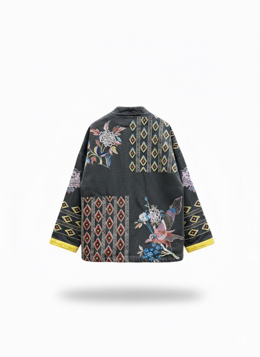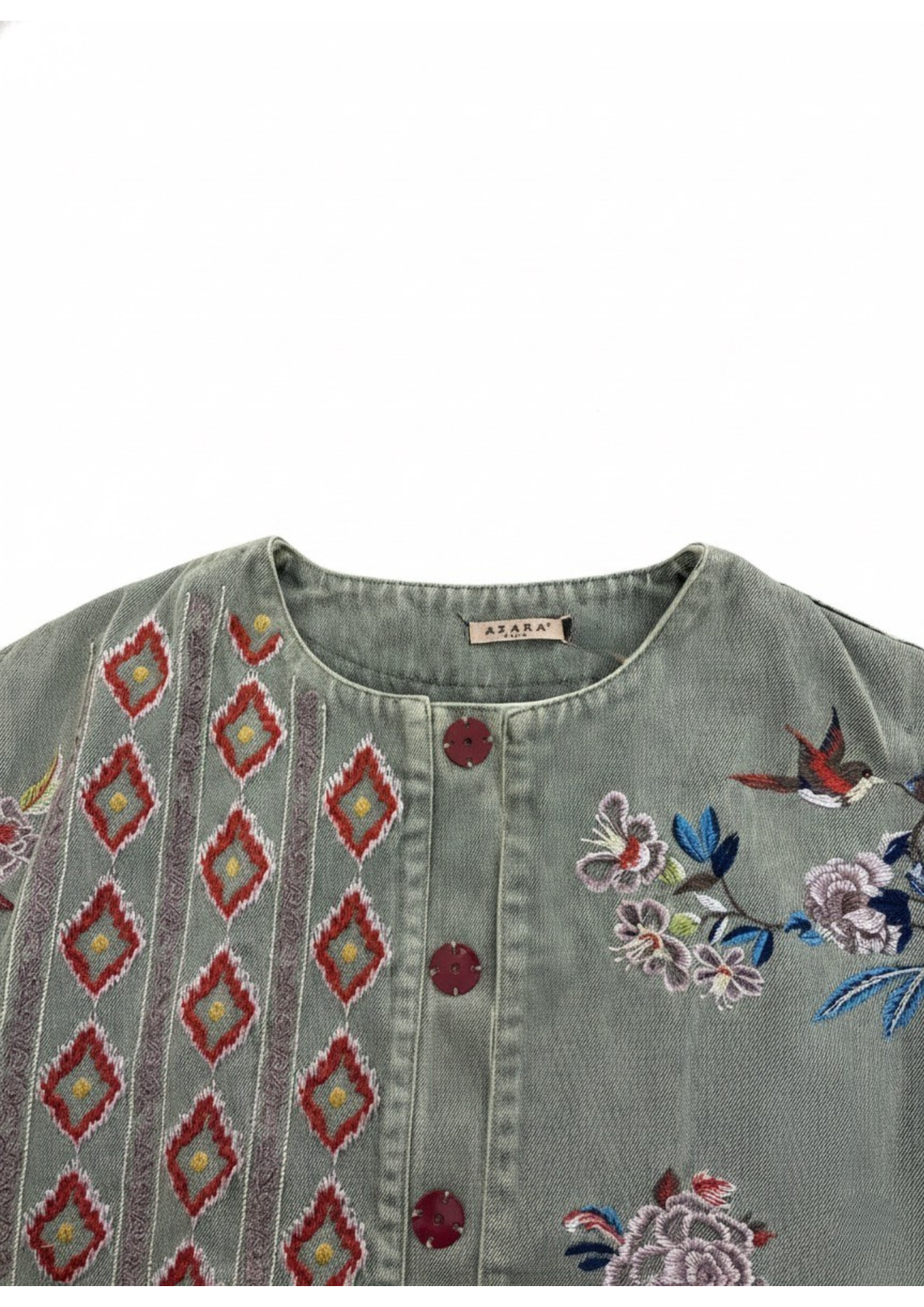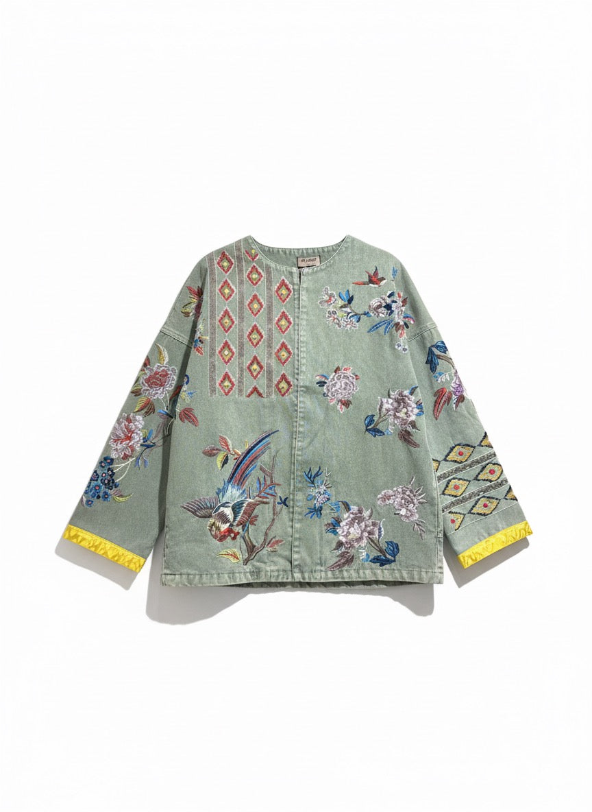 Tessuto: 95% cotone, 5% poliestere. Design dritto oversize. Collo rotondo. Ricamo a mano. Tasche invisibili. Chiusura con bottoni sul davanti. Fodera interna. Taglia unica, spalla: 55cm, lunghezza: 68cm, torace: 112cm, maniche: 54cm.