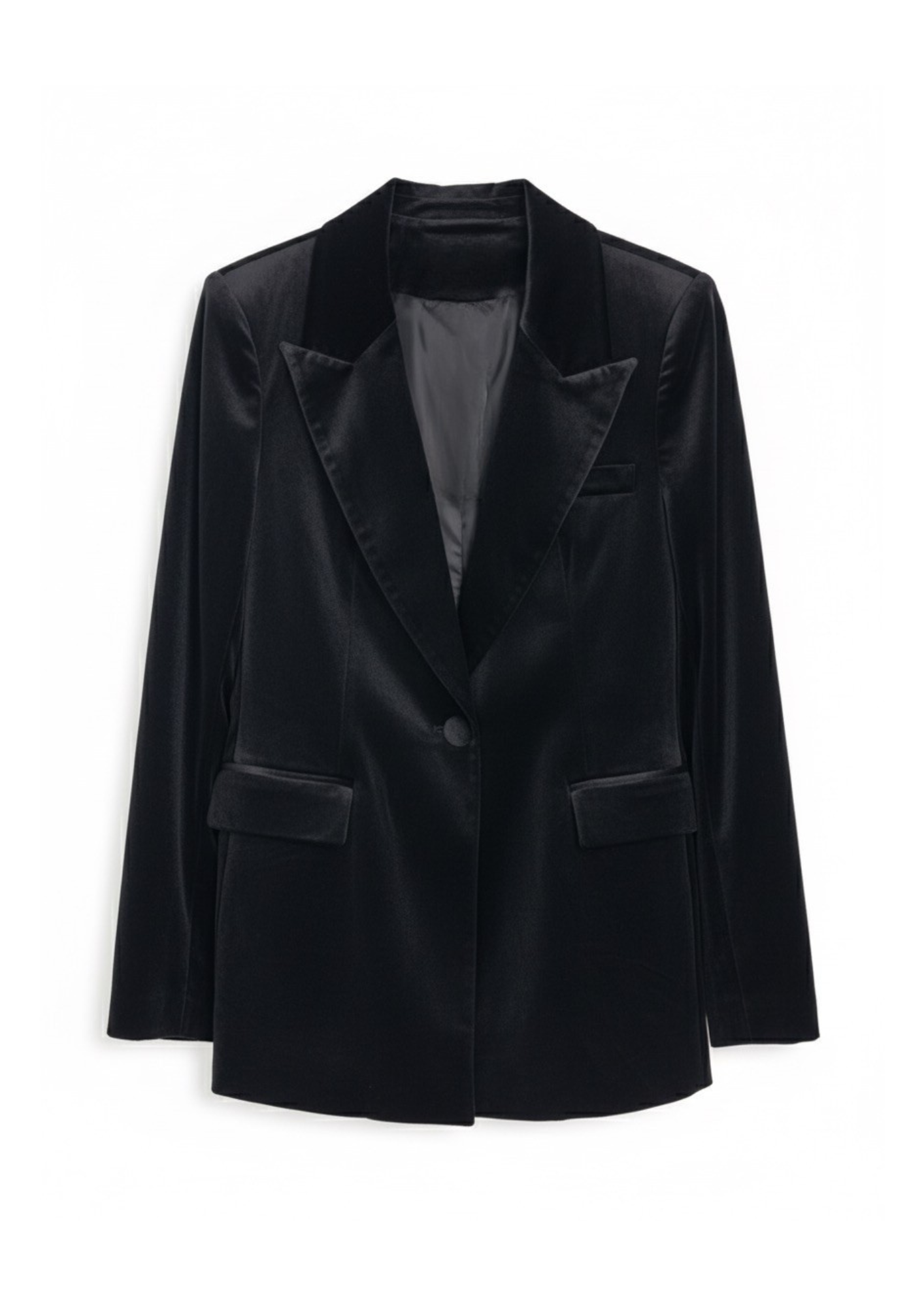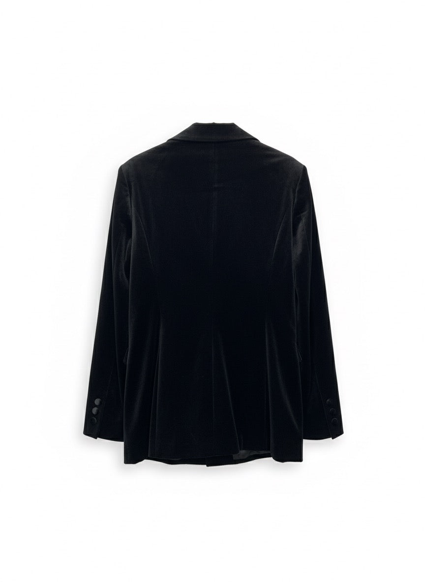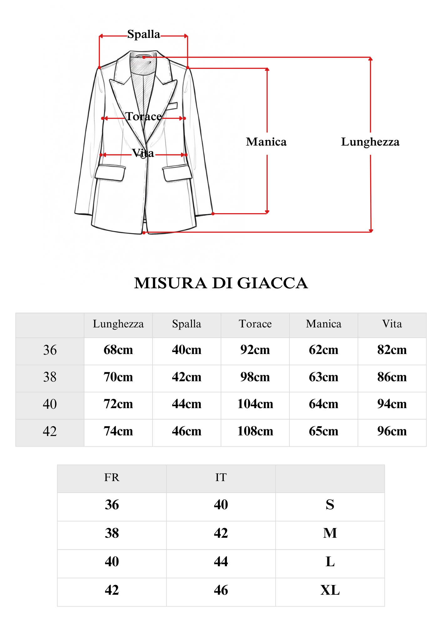 Blazer con collo a revers e maniche lunghe. Tasche anteriori con patta. Chiusura frontale con un bottone. Tessuto: 95% poliestere, 5% elastane. Misure francesi 36-42, corrispondono misure italiane 40-46.