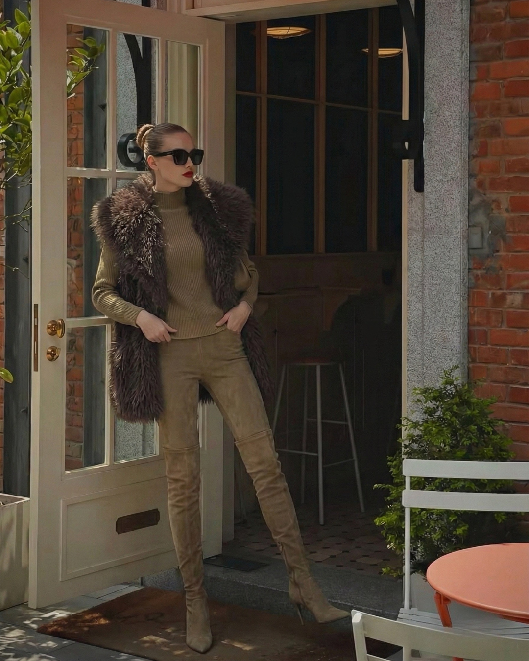 Il raffinato colore marrone conferisce un’eleganza moderna e facilmente abbinabile, ideale per look casual chic o più ricercati.