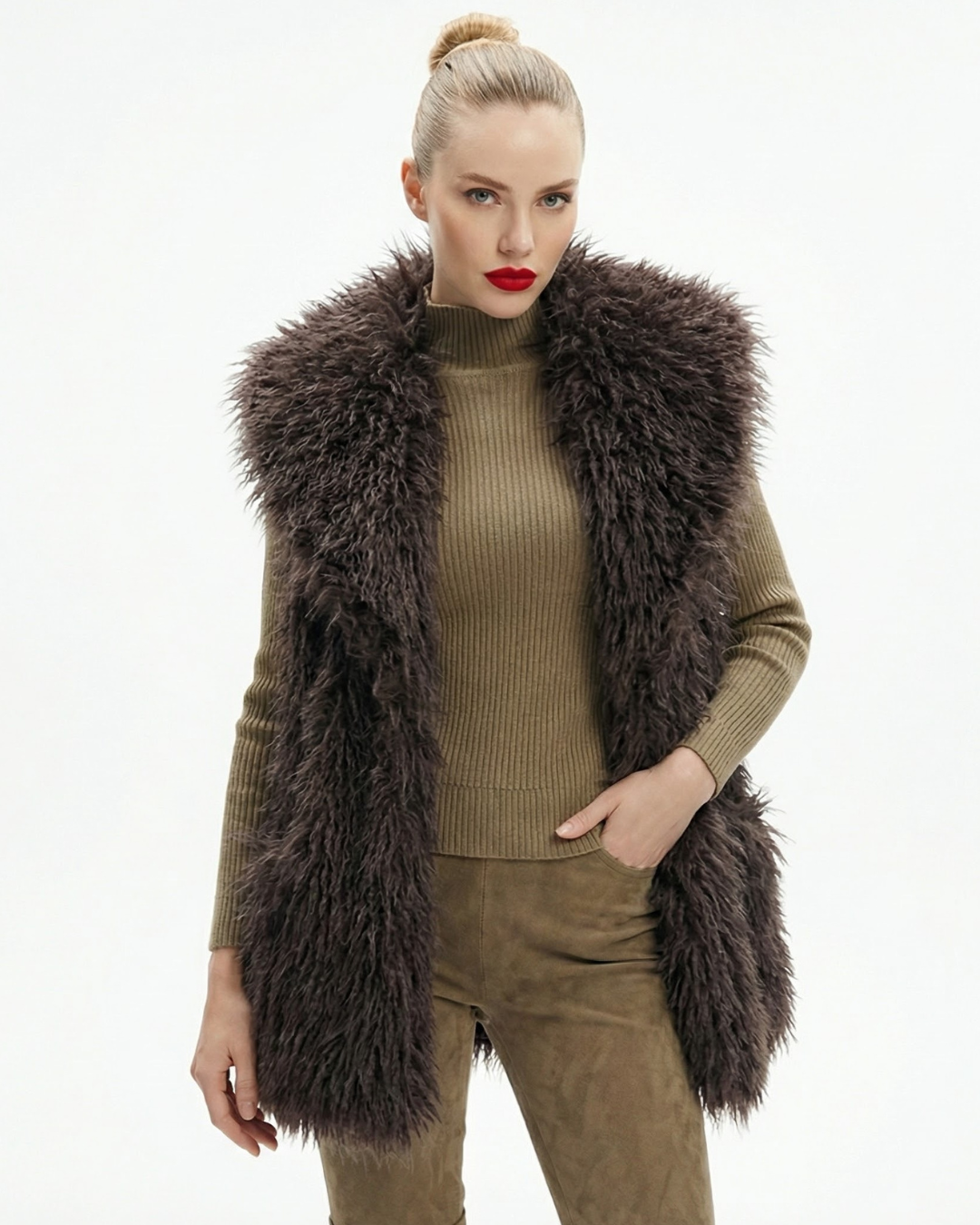 Scopri questo elegante gilet in eco-pelliccia realizzato al 100% in poliestere, morbido, caldo e incredibilmente piacevole al tatto.