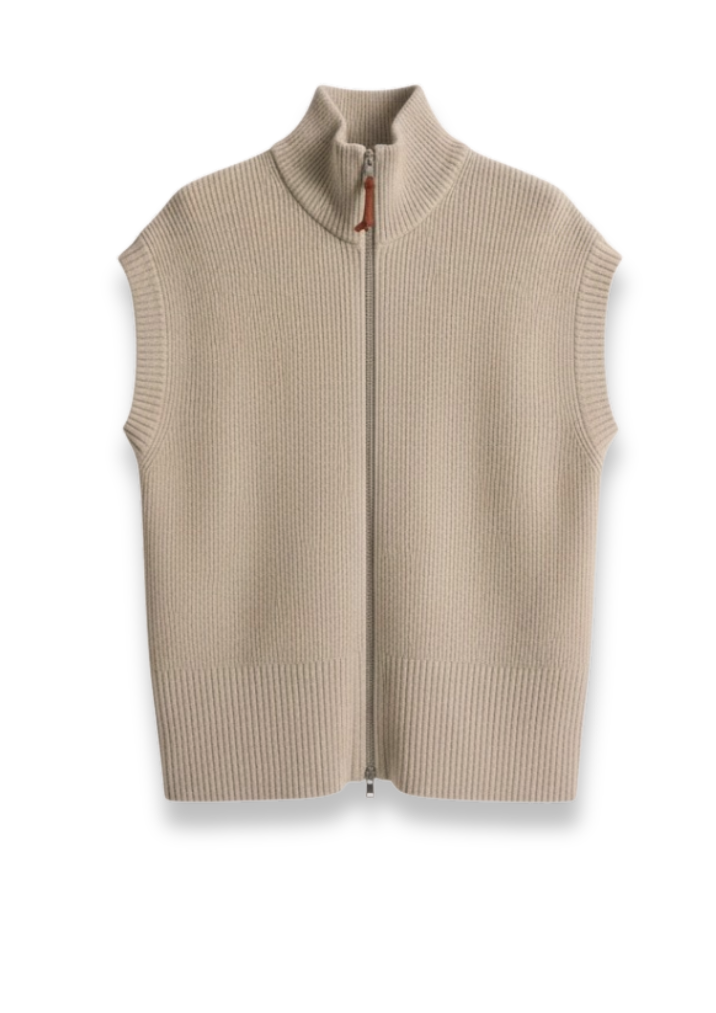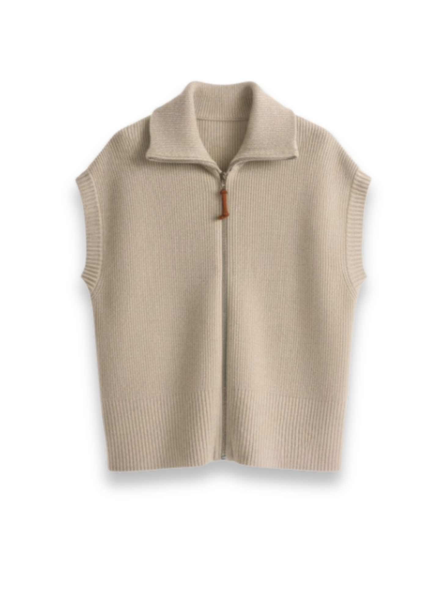 • Carica l'immagine nel visualizzatore di Gallery, Gilet Minimalista in Maglia Taupe con Zip