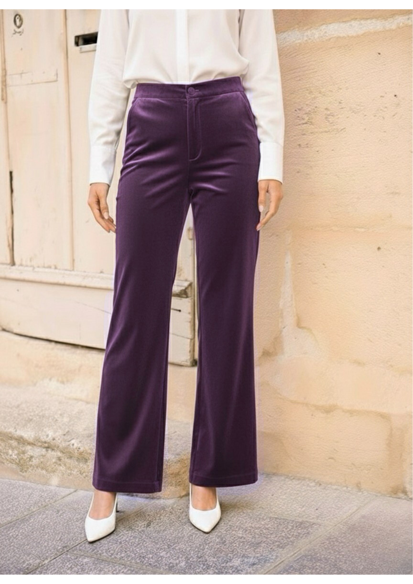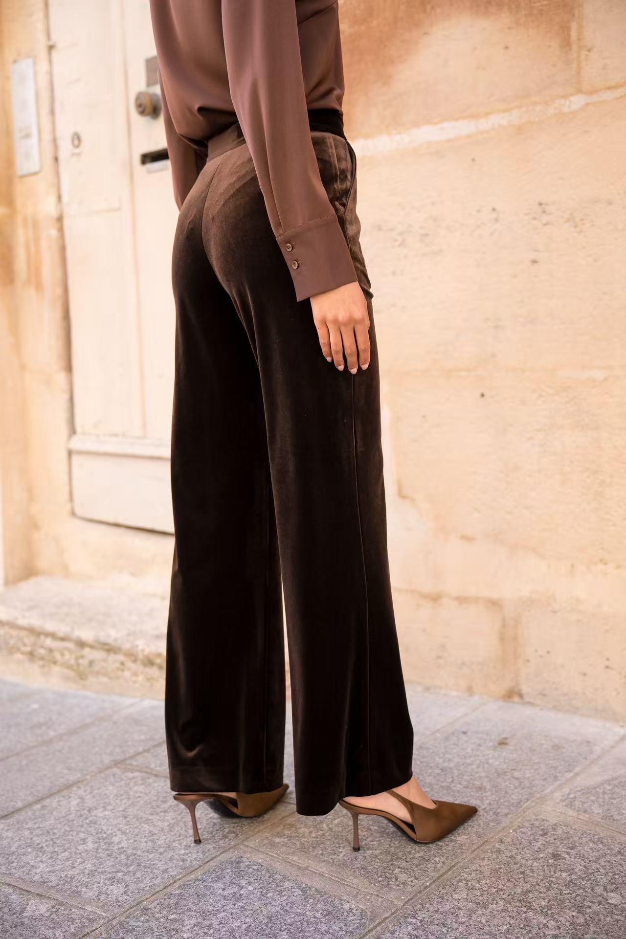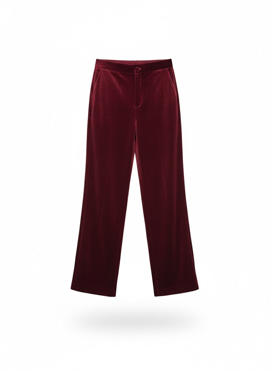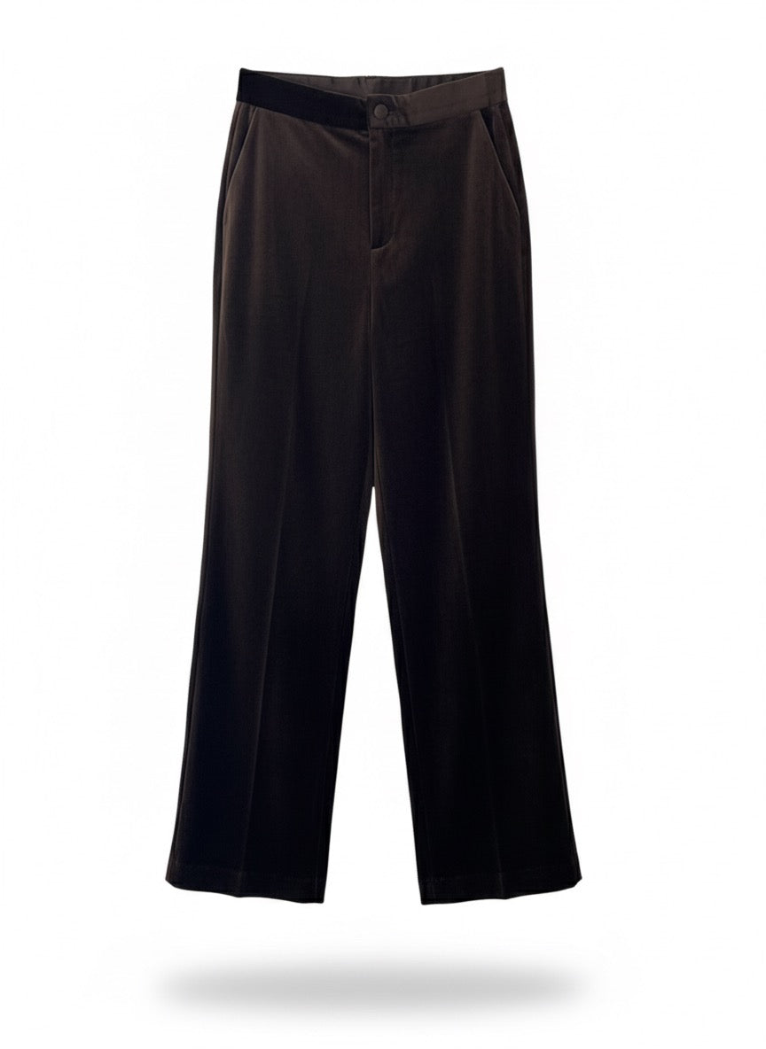 Pantaloni velluto dritto. Design lungo. Vita media. Due tasche laterali. Senza cuciture visibili. Tessuto: 95% poliestere, 5% elastane. Misure francesi 36-42, corrispondono misure italiane 40-46.