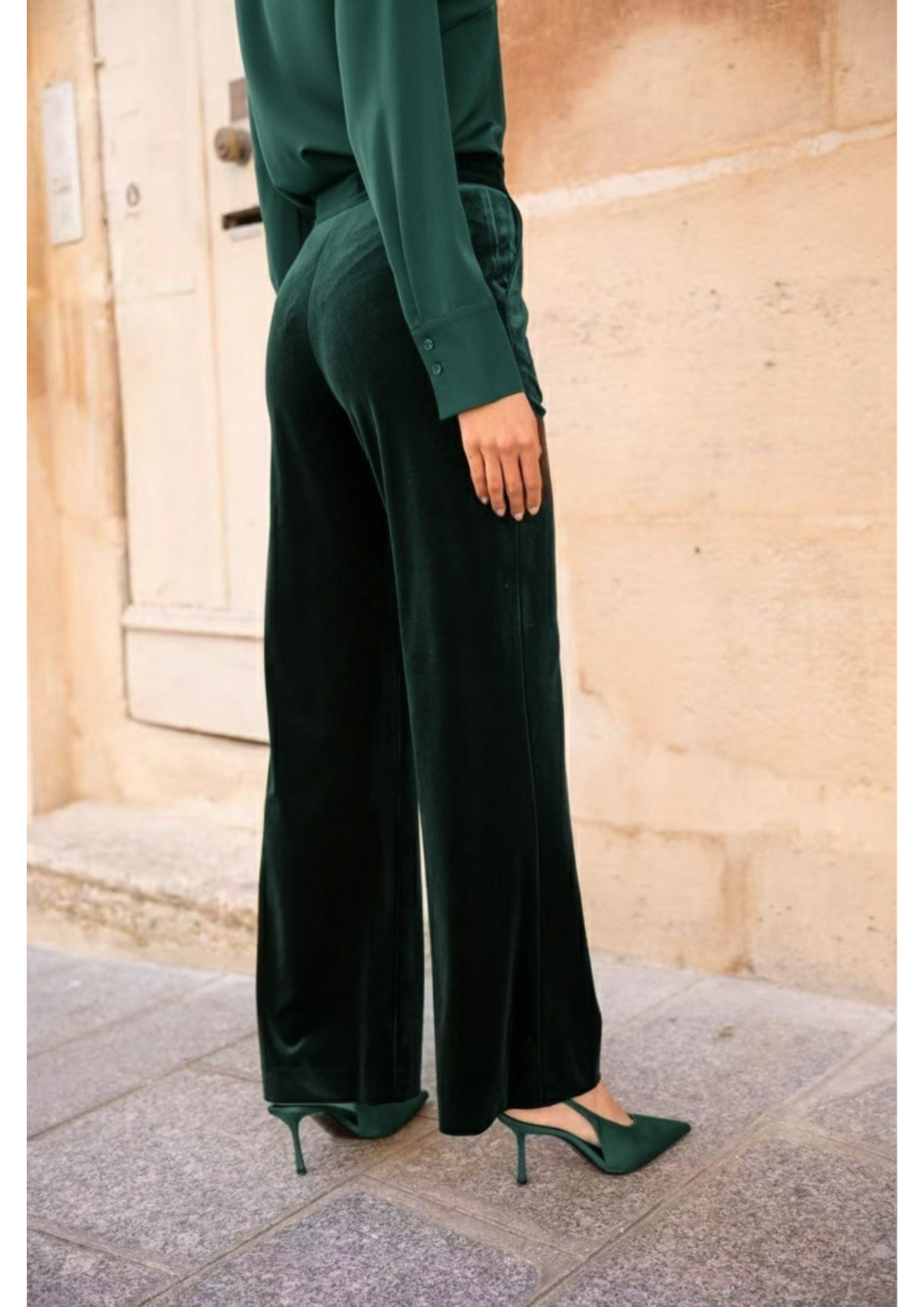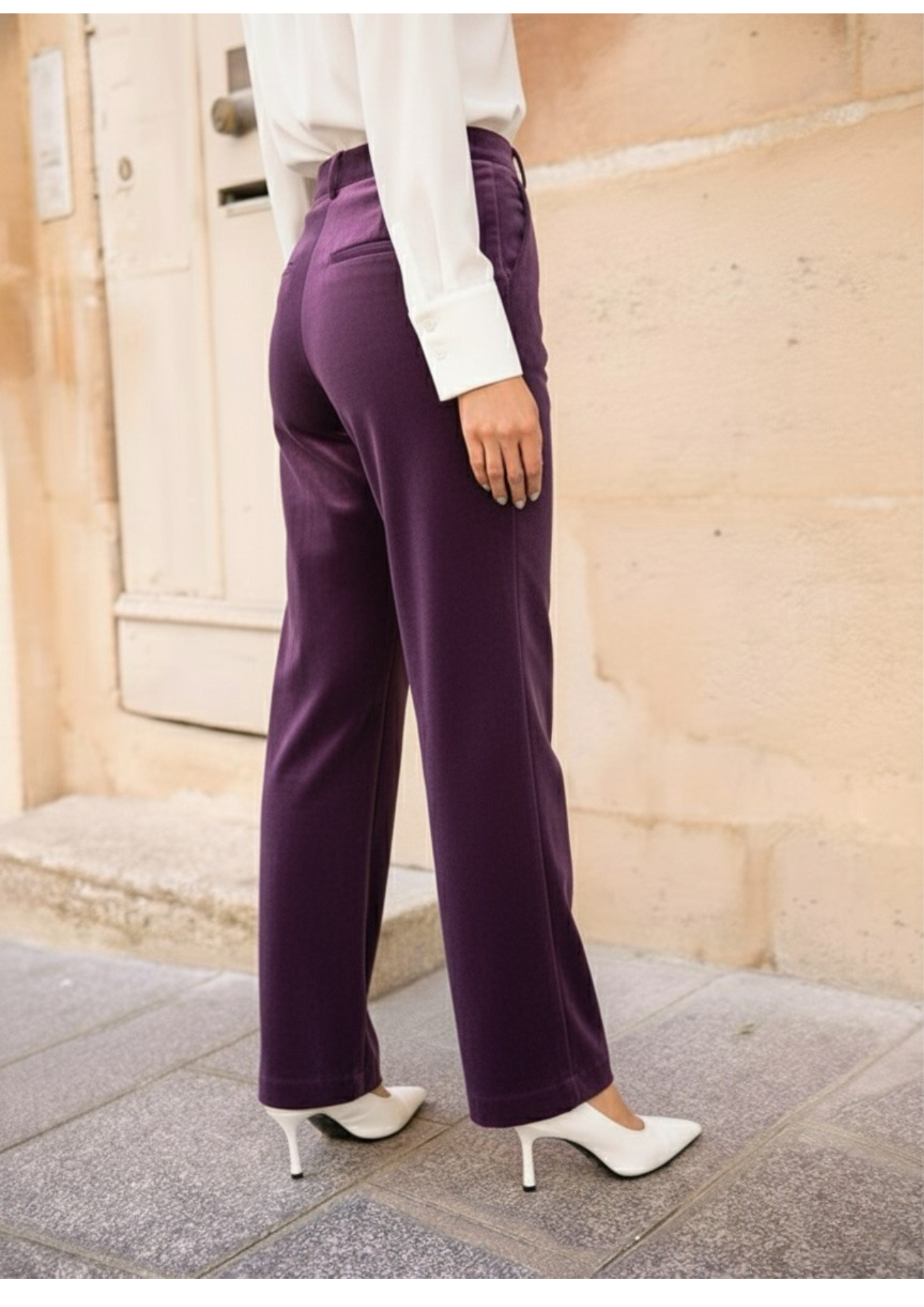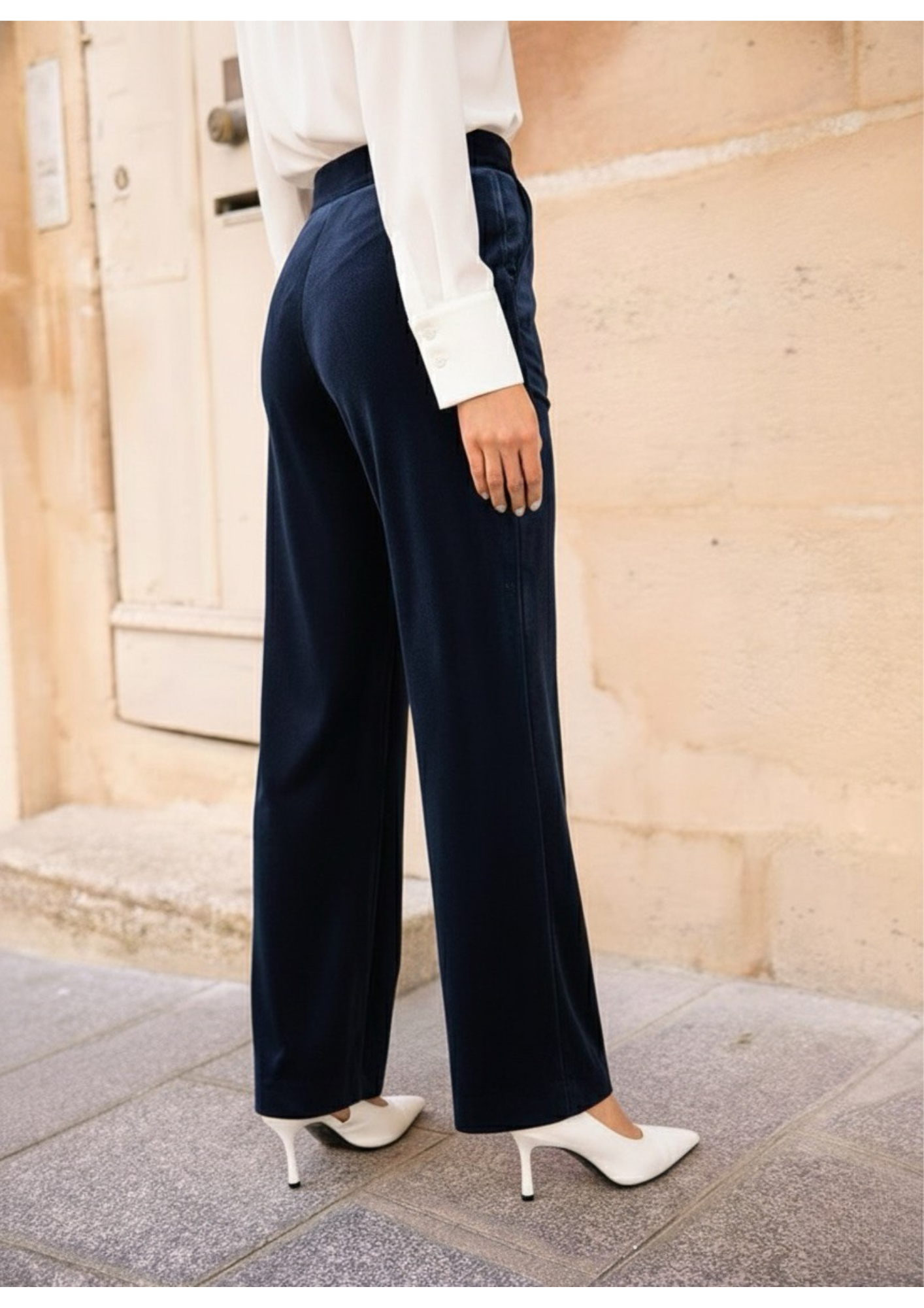 Pantaloni velluto dritto. Design lungo. Vita media. Due tasche laterali. Senza cuciture visibili. Tessuto: 95% poliestere, 5% elastane. Misure francesi 36-42, corrispondono misure italiane 40-46.
