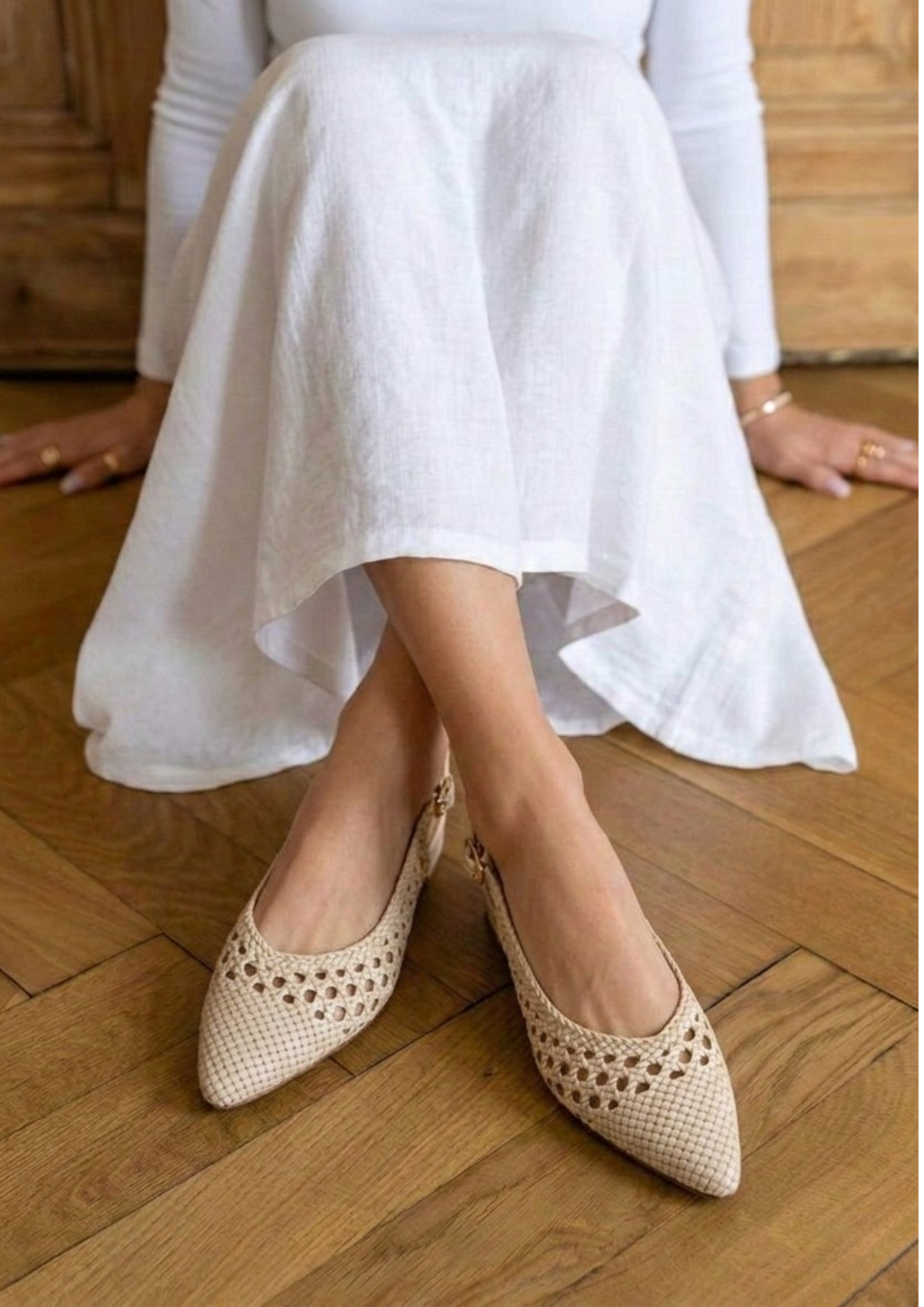 Scopri il perfetto equilibrio tra design contemporaneo e maestria classica. Le nostre nuove slingback intrecciate sono l’accessorio indispensabile per la stagione, pensate per chi cerca un look sofisticato senza rinunciare alla comodità. La trama traforata non solo aggiunge un tocco di classe artigianale, ma garantisce anche un’ottima traspirabilità per le giornate più calde.