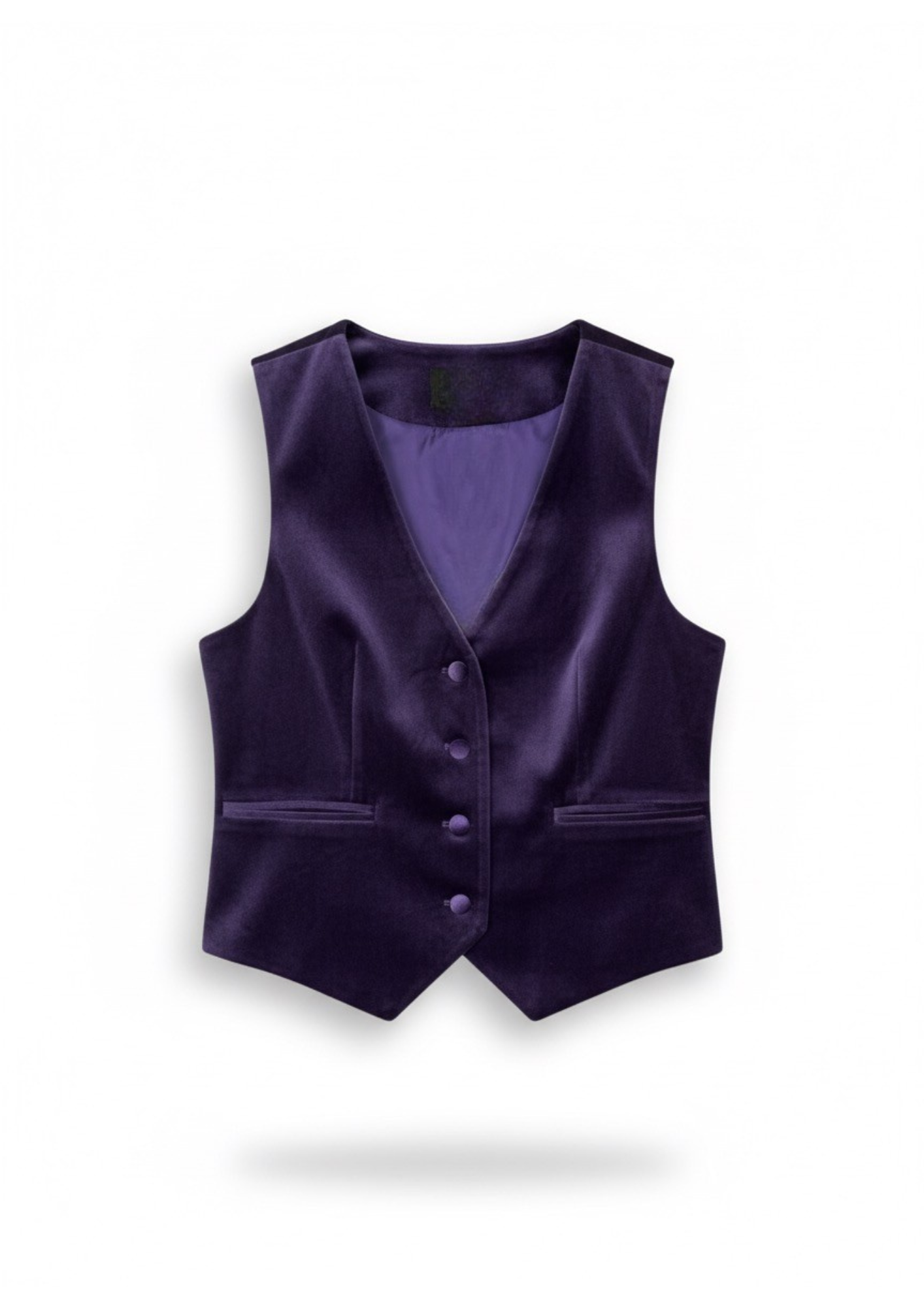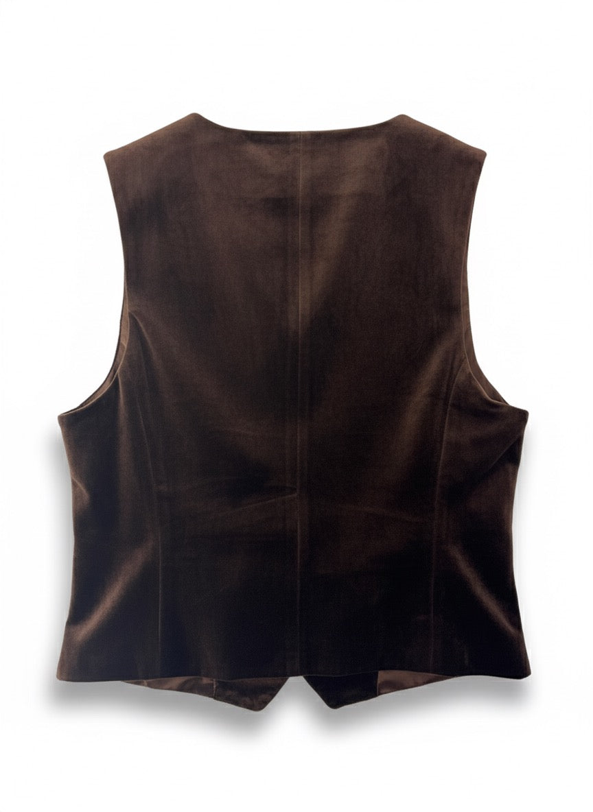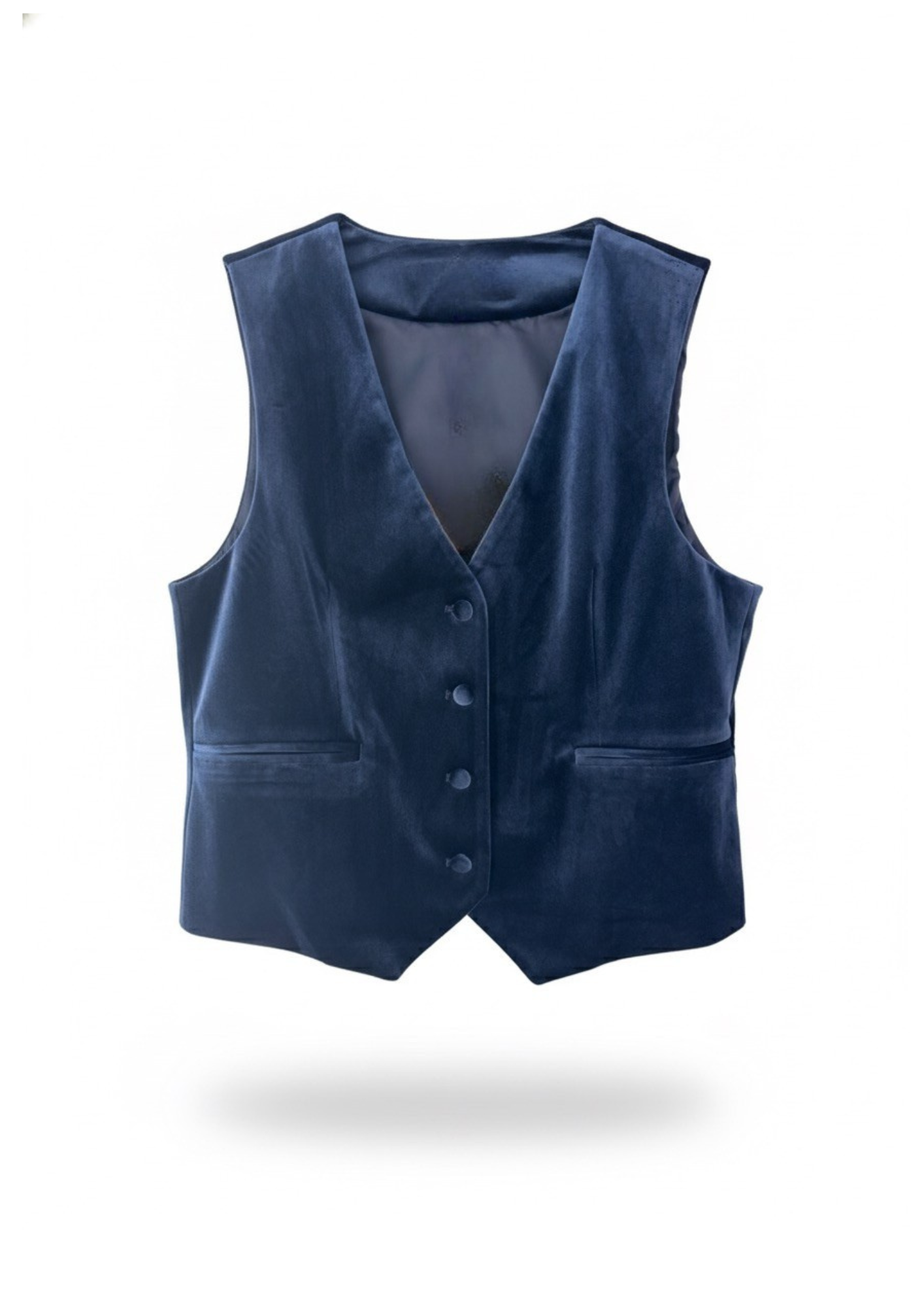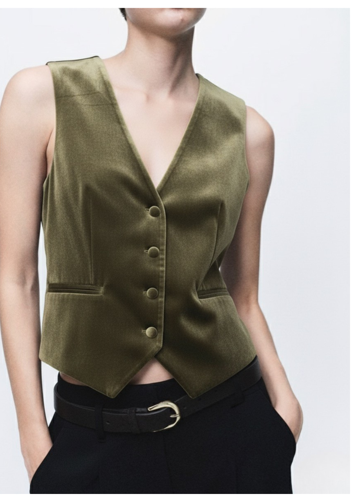 Tessuto: 95% poliestere, 5% elastano. Stile abito. Collo a V. Senza maniche. Due tasche laterali a filetto. Chiusura con bottoni sul davanti. Fodera interna. Misure francesi: 36-42, corrispondono misure italiane: 40-46.