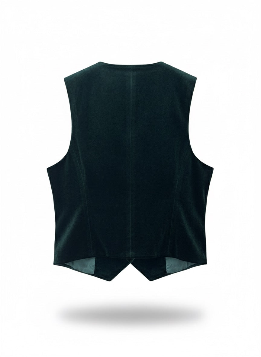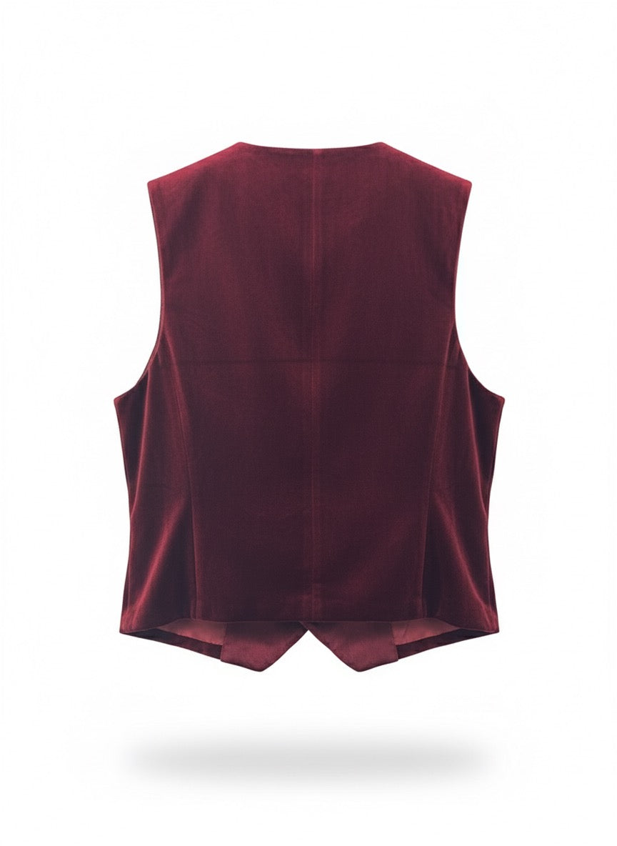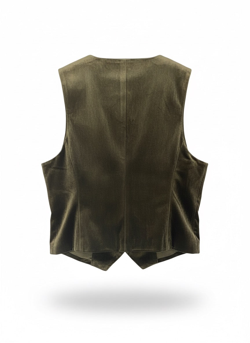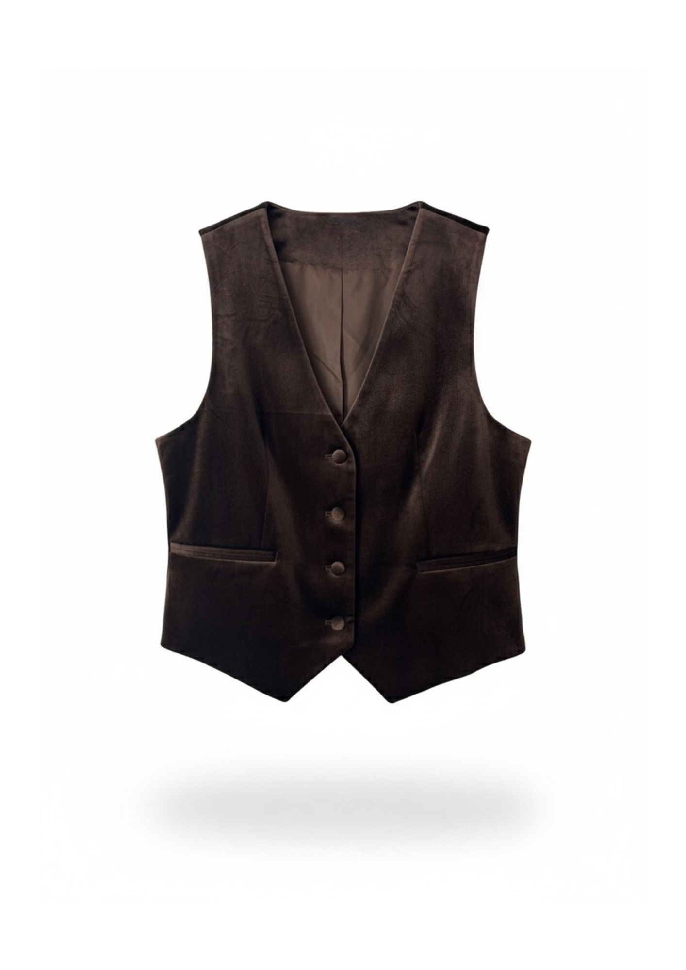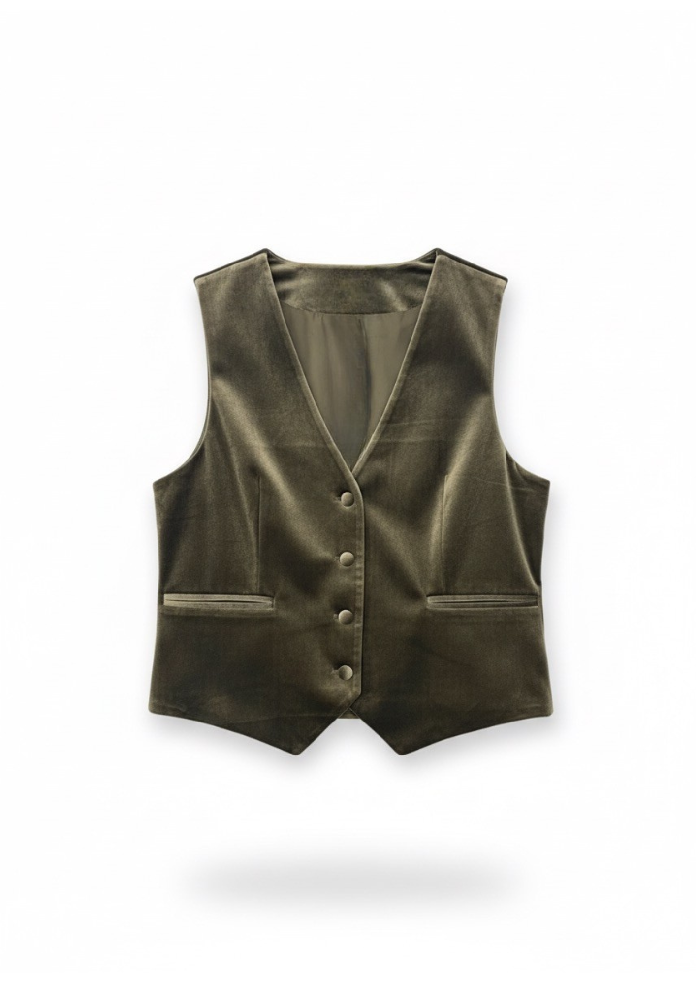 Tessuto: 95% poliestere, 5% elastano. Stile abito. Collo a V. Senza maniche. Due tasche laterali a filetto. Chiusura con bottoni sul davanti. Fodera interna. Misure francesi: 36-42, corrispondono misure italiane: 40-46.