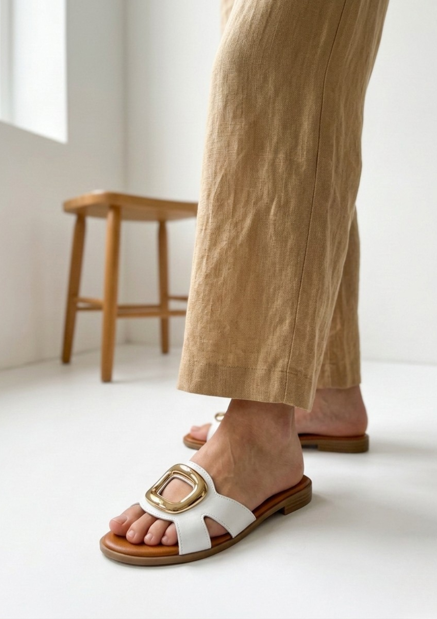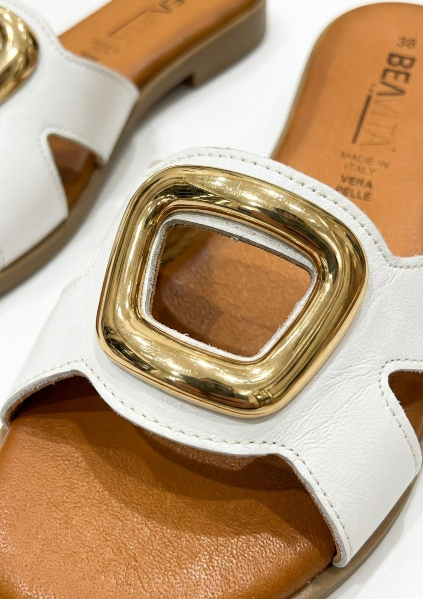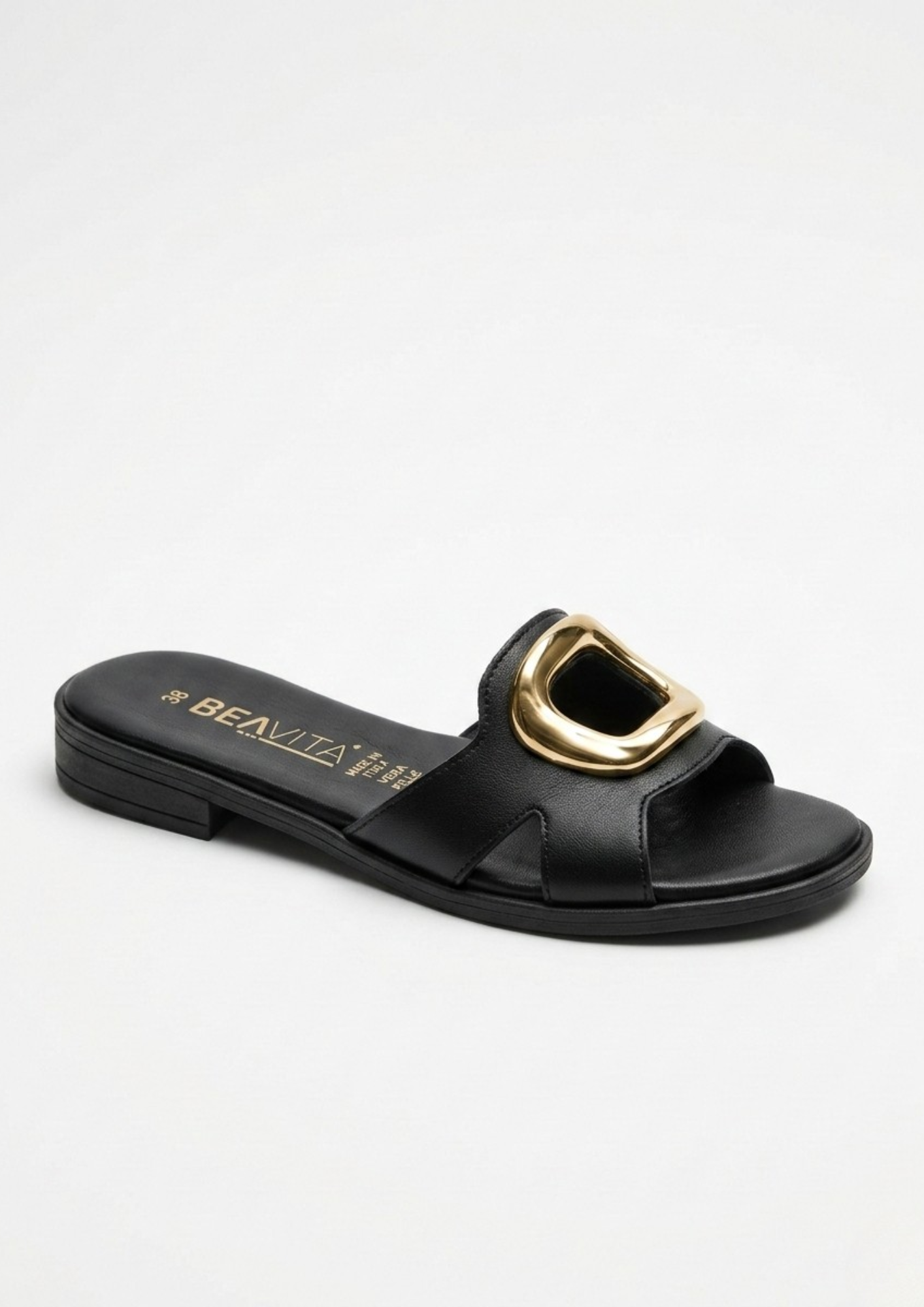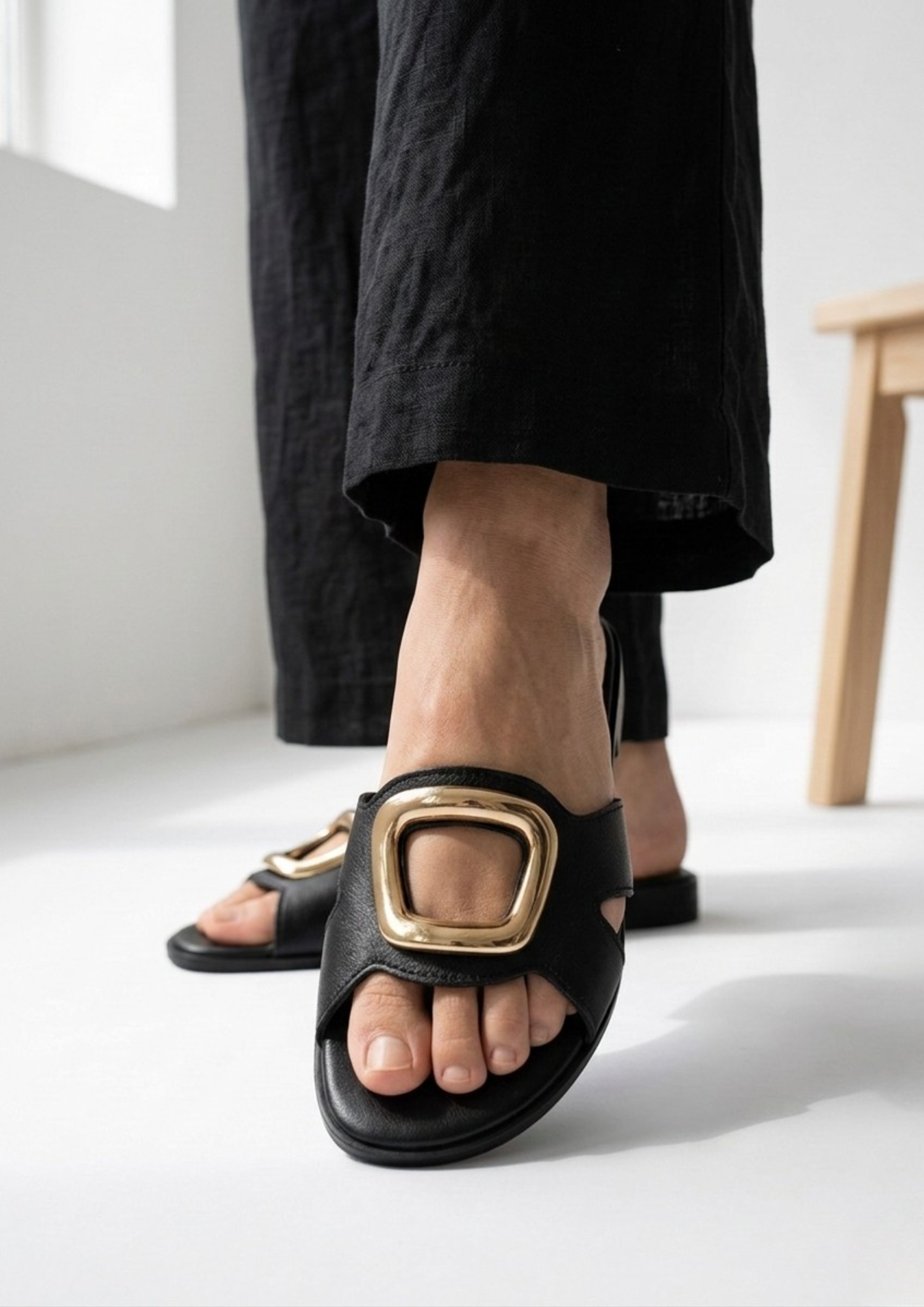 La morbida pelle d’agnello avvolge il piede delicatamente, mentre l’icona a fibbia dorata sul davanti conferisce un’estetica lussuosa e moderna, perfetta sia per look casual che per occasioni più ricercate.