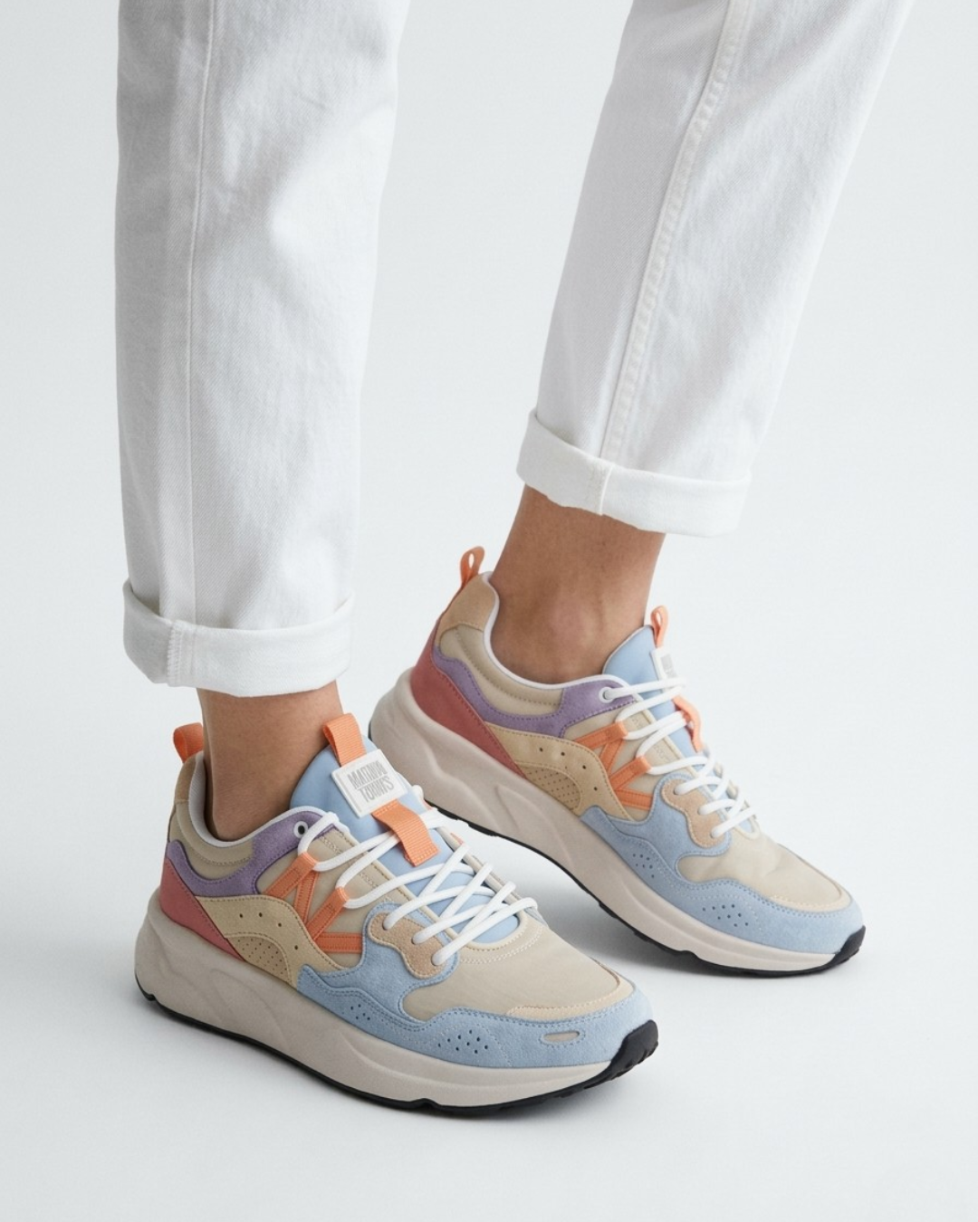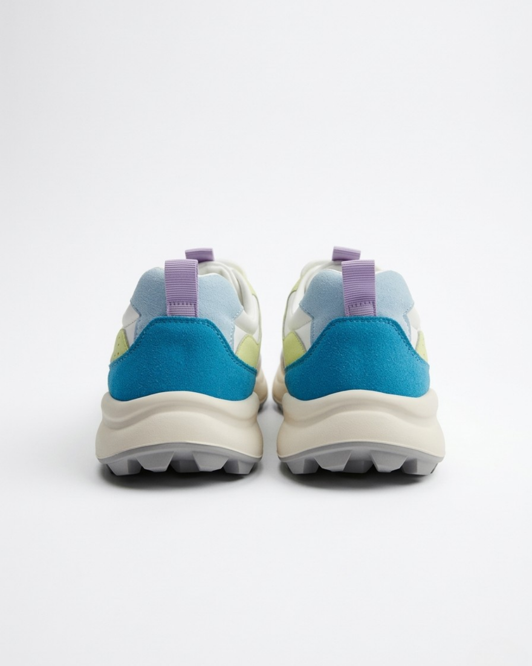 La tomaia è realizzata in pelle di agnello scamosciata, morbida al tatto e resistente nel tempo, mentre la suola leggera integra una soletta in memory foam con effetto di ritorno elastico, per garantire un comfort prolungato durante tutta la giornata.