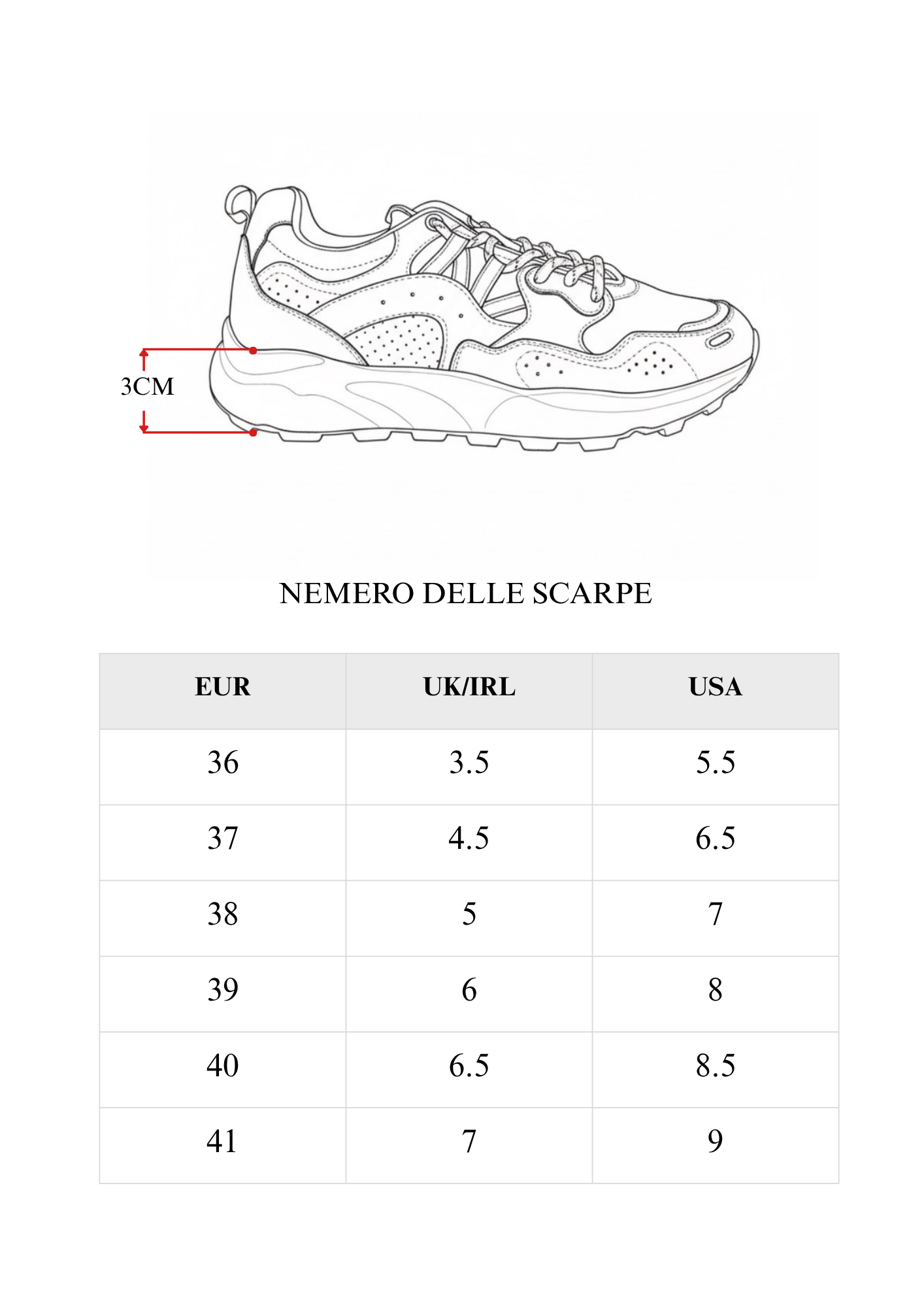 La tomaia è realizzata in pelle di vitello scamosciata, morbida al tatto e resistente nel tempo, mentre la suola leggera integra una soletta in memory foam con effetto di ritorno elastico, per garantire un comfort prolungato durante tutta la giornata.